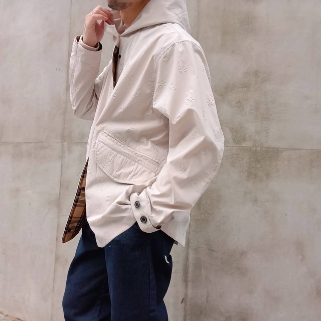 <商品詳細> 品番: 1877 pe46 Color:ブラック Size: S M L Price:¥66,000 素材:ポリエステル:100% 生産国:日本 サイズ 着丈 肩幅 身幅 バスト 袖丈 S 80.5 47.1 56.2 112.4 61.5 M 82.0 47.6 57.5 115.0 64.2 L 84.1 49.8 60.1 120.2 64.3 ※スタッフ身長170cm 着用サイズS <商品説明> wjk定番ラップコートである「witch coat」にモッズコートの要素をクロスオーバーさせた一着。特徴的な斜めに走るファスナーや大ぶりのフード、首周りのボリューム感は「witch coat」を踏襲しつつシーズンらしいライトな着用感に仕上げている。丈はヒップが隠れる程のハーフ丈とすることで様々なシチュエーションでの汎用性を持たせた。洗いざらしのコットンのような風合いが特徴の高密度機能素材。嵩高でふくらみのあるタスラン糸は染色工程で揉み加工を施すことで、合繊の機能(撥水性、防シワ)はそのままに、洗いざらしの天然繊維のような風合いを生み出している。高密度ながら張力をかけずに織りあげることで、しなやかな風合いが作り出されるとともに、生地にハリコシが生まれ型崩れしにくくなる。ジャケットの上に羽織れるよう、綺麗なラインを保ちつつややゆとりをとったシルエット。裏地を高機能メッシュ素材にすることで、肌離れも良くサラッとした着心地。wjkオリジナルファスナーを採用。 wjk 「w」「j」「k」という意味を持たない3文字。それらを組み合わせたブランド名は、名前によってデザインを縛られたり、偏ったイメージを持たれたくないという考えから。多種多様なデザイン・アイデアが生まれては消える世の中で、我々が培った経験から見出した結論は2つ。 「良い物は変わらない」という事実と、 「残る物は本物」という事実。 この二つの事実を通し我々の観点から「不変」という物を表現し続ける。