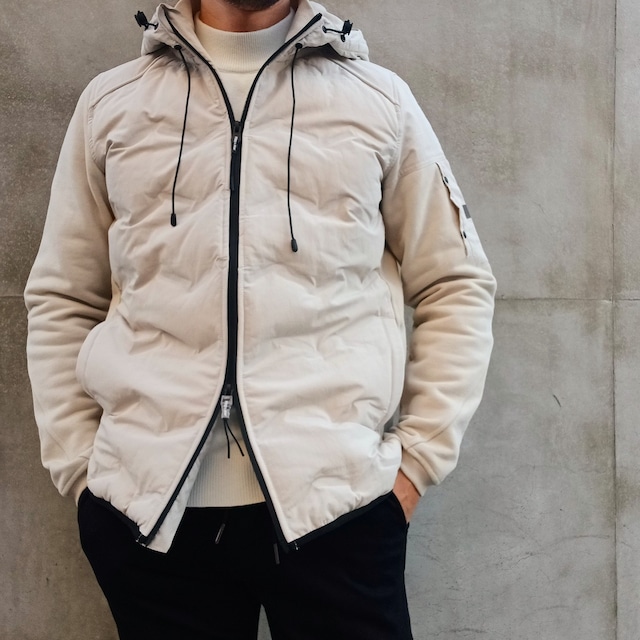 <商品詳細> Color:ライトベージュ Size: S - L Price:¥64,900 tax in 素材:コットン60% ナイロン40% <サイズ> S : 肩幅42cm 身幅52cm 着丈67cm 袖丈65cm M : 肩幅43cm 身幅54cm 着丈68cm 袖丈66cm L : 肩幅44cm 身幅56cm 着丈70cm 袖丈66cm ※着用スタッフ:身長170cm / 62kg 着用サイズ:S <商品説明> 身頃には軽量で丈夫なナイロン素材を使用し、ほどよく中わたを入れることで防寒性を確保しています。後ろ身頃と袖には柔らかなコットン素材を組み合わせ、動きやすさと快適な着心地を叶えた異素材コンビのフード付きブルゾンです。 異なる素材の質感が自然な立体感を生み、カジュアルながらも洗練された印象となっております。 幅広いスタイリングに取り入れやすい、存在感のある一着です。 <P.M.D.S.> 2015年よりスタートしたイタリア・ナポリ発のブランド、〈ピーエムディーエス〉。ブランド名は“プレミアム・ムード・デニム・スーペリア”の略称となっており、その名を見てもデニムへのこだわりには強い思いが感じられる。デザイナーのペーニョは、まずデニム作りにおいて重要となる生地にフォーカス。最高の生地を研究し尽くし、国際的にも高品質なデニム生地を採用している。また、カッティングやウォッシュ、ステッチなど、あらゆる分野においてもイタリア国内トップクラスの完成度とも言われ、細部までこだわり抜かれたデニムはまさに、“プレミアムデニム”と言っていいだろう。