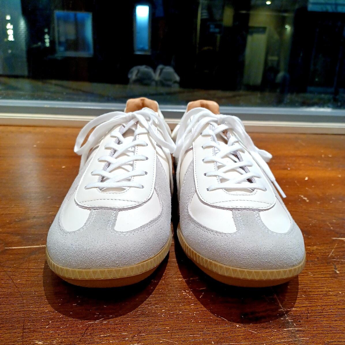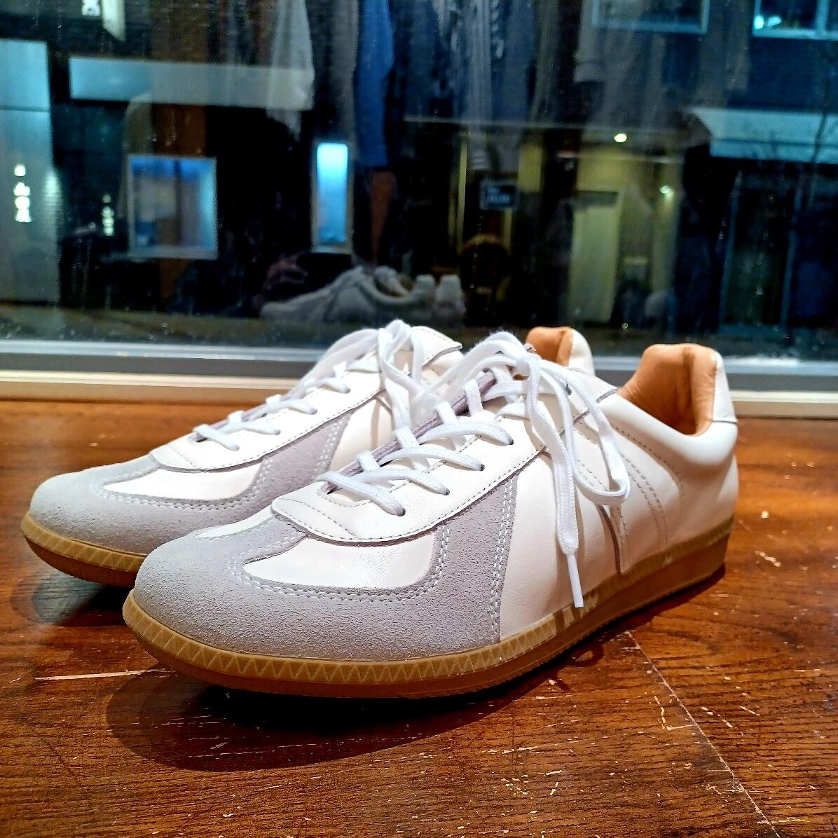 1970年~80年代に西ドイツ軍のトレーニングシューズとして正式採用されたシューズ「ジャーマントレーナー」の復刻モデル。(オリジナルブランド)カジュアルはもちろんですが、ビジカジまで対応できるスニーカーです。