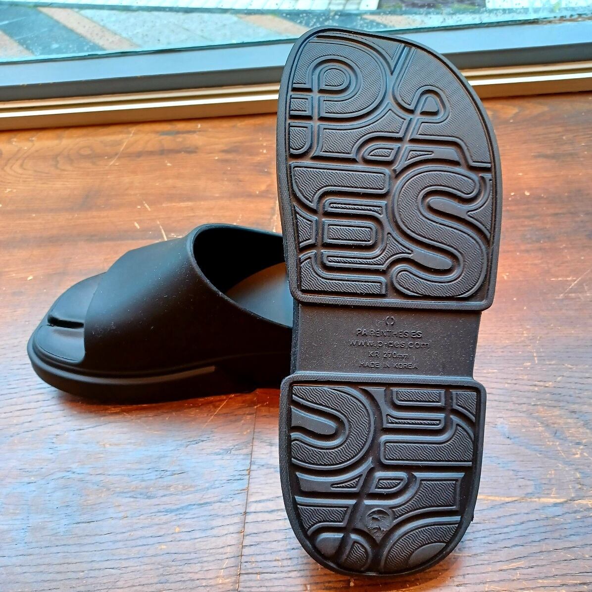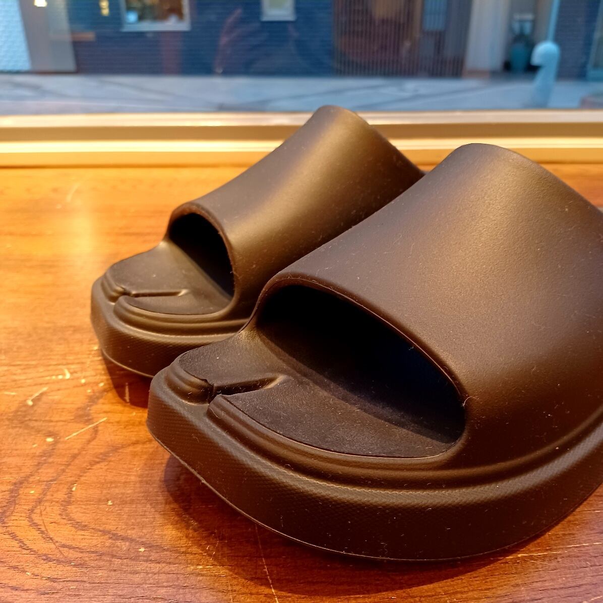 PAESのアイコン的なデザインである、つま先が足袋のようなデザインのスライドサンダル。。