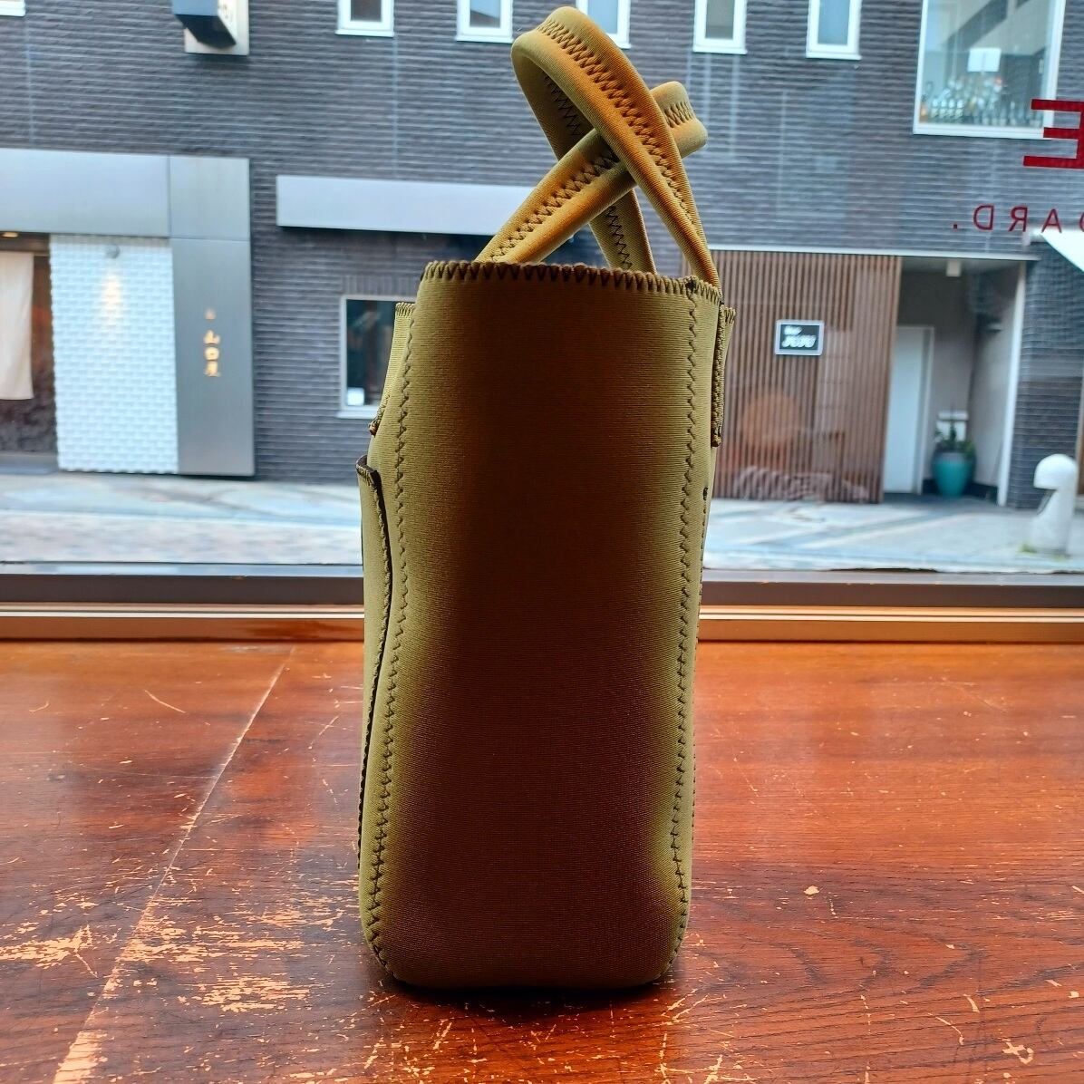 12色展開でリバーシブルにもなる男女兼用の手提げバッグ。縫い代無しのウエットスーツ縫製で両面表ゆえにリバーシブルを実現、防水素材で必要最低限の荷物を入れて使用を想定したバッグ。スマートフォンやお財布、500mlのペットボトルなど入れられます。