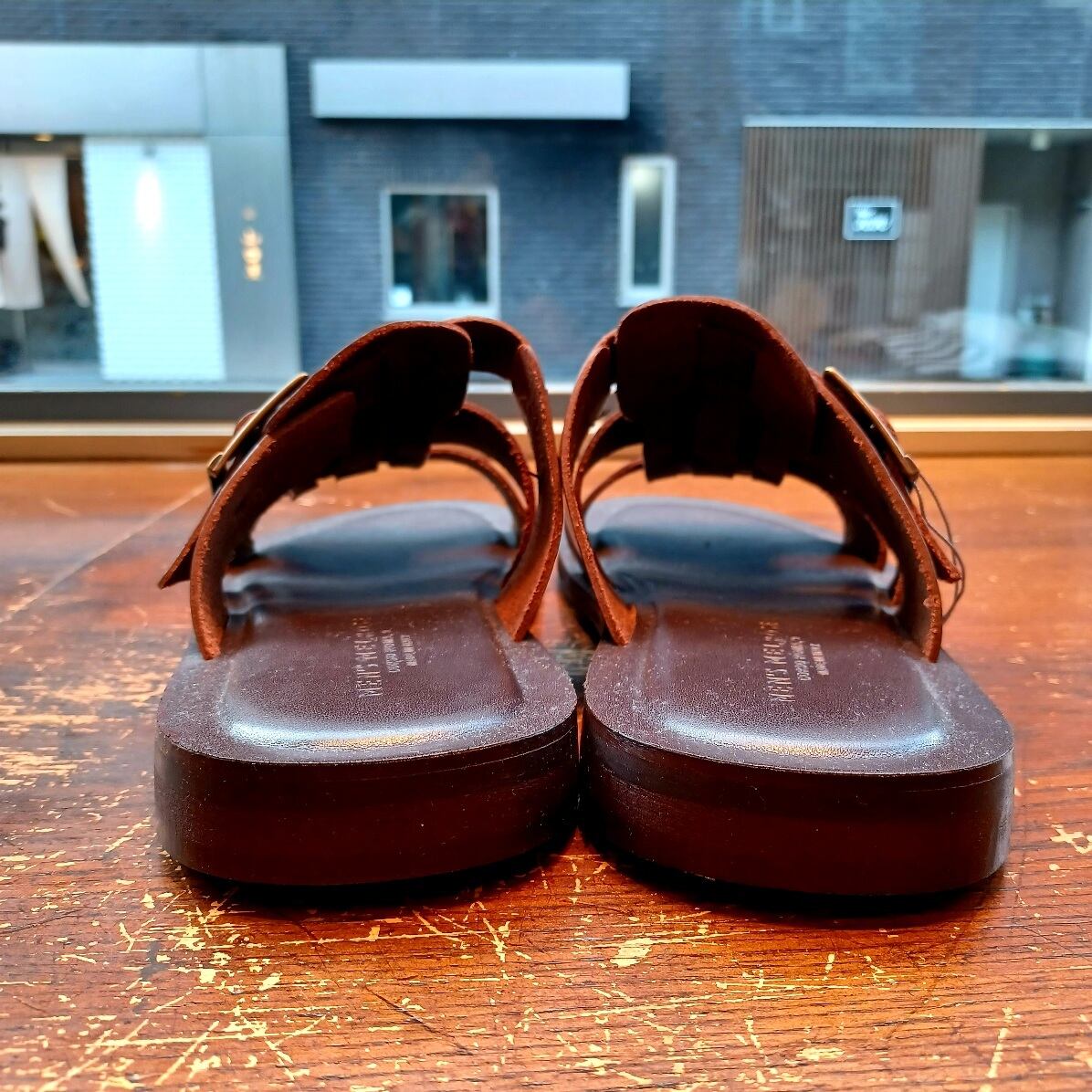 トレンドのグルカサンダルのようなアッパーデザインに仕上げつつ、脱ぎ履きが簡単なスリップオン仕様にアレンジしてあるのでリラックスして履くことが可能です。