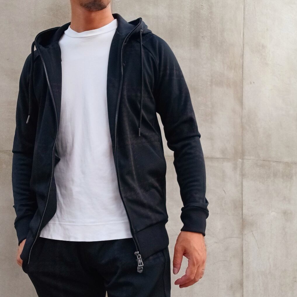 1PIU1UGUALE3 RELAXからクラシカルジャガードシリーズの登場です。千鳥柄でウィンドウペンを描いた印象的なオリジナルグラフィック。ジャカード織ならではの陰影が、柄に奥行きと立体感をもたらし、上品な存在感を演出します。ストレッチ性に優れた生地が快適な着心地を実現し、身体のラインにすっきりと馴染むスマートなシルエットに。ジャカード素材ならではの繊細な表情が、カジュアルな中にも大人の品格を漂わせます。スタイリングの差し込みとして単体使いも勿論、同生地のジョガーパンツ(usb-25102)と組み合わせれば、上質なリラックス感とモダンな洗練が共存する都会的スタイルの完成です。