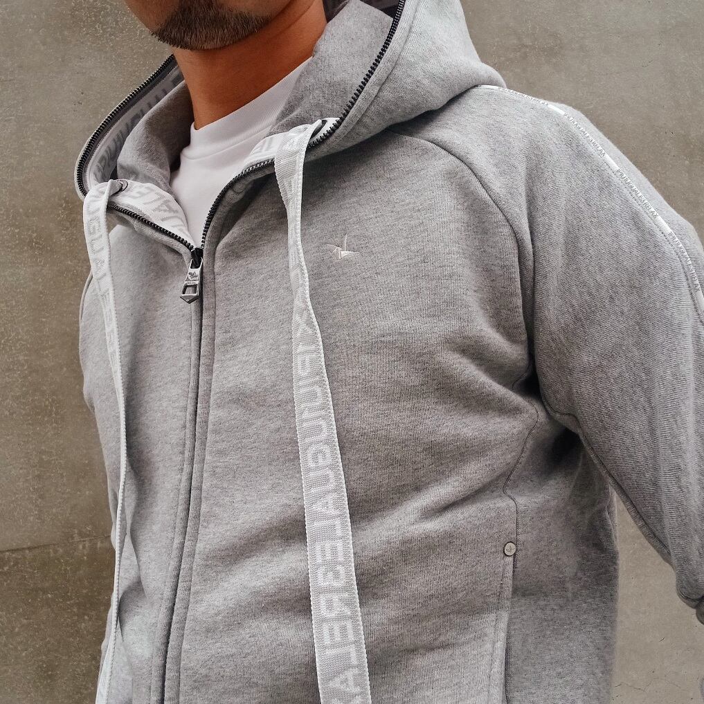 1PIU1UGUALE3 RELAXからテクニカルスウェットを使用したジップアップパーカーの登場です。表面に綿素材、裏面にポリエステルパイルを使用した、ブランドオリジナルのCVC裏毛生地。軽やかな質感ながらハリ感を保持し、美しいシルエットを形成します。吸水速乾機能も備え、運動性と高級感を両立したハイスペックな仕上がりです。太めのスピンドルにはブランドロゴを大胆にあしらい、存在感をプラス。さらにフード回りにもテープを差し込んで華やかに演出しました。左肩から袖口にかけて走らせたパインピングもスポーティなアクセントに。