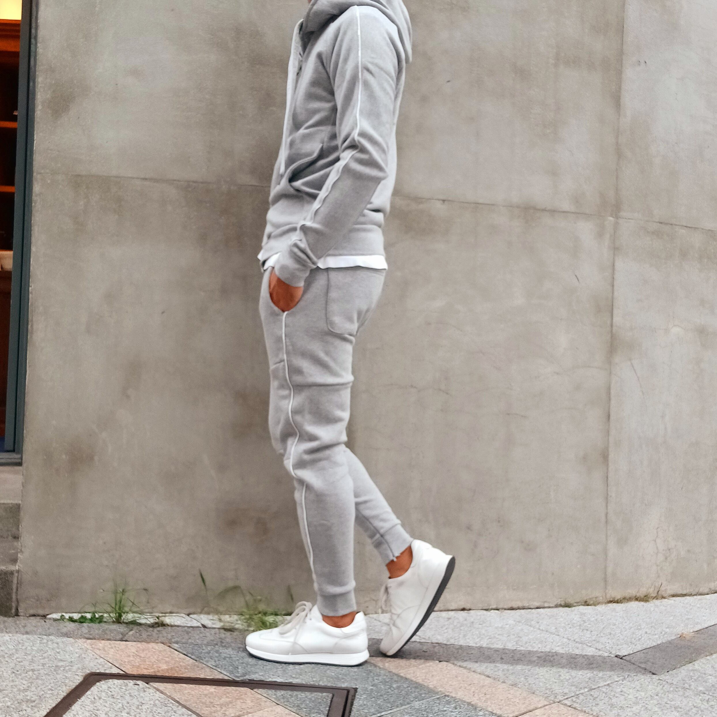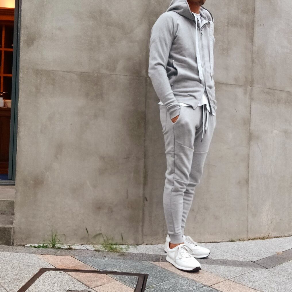 1PIU1UGUALE3 RELAXからテクニカルスウェットを使用したロングパンツの登場です。表面に綿素材、裏面にポリエステルパイルを使用した、ブランドオリジナルのCVC裏毛生地。軽やかな質感ながらハリ感を保持し、美しいシルエットを形成します。吸水速乾機能も備え、運動性と高級感を両立したハイスペックな仕上がりです。太めのスピンドルにはブランドロゴを大胆にあしらい、存在感をプラス。裾にはファスナーを仕込むことで着脱時のストレスを軽減しています。左サイドに走らせたパインピングもスポーティなアクセントに。同デザインのパーカー(uso-25148)と合わせれば大人のラグスポスタイルの完成です。