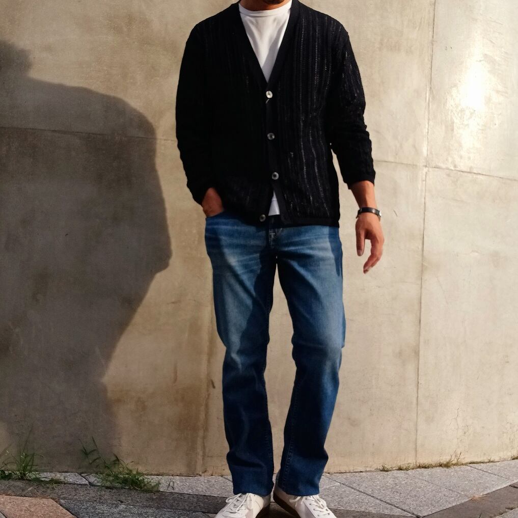 メンズラインでは、いくつになってもデニムが似合う人であって欲しいとの思いを込めて、ベーシックな顔つきながらもスタイルアップして見える絶妙なカッティング、過度なダメージや色落ちをあえて避け、清潔感を意識しました。
