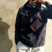 ボディバッグで大事なことは、きちんと身体に沿うかということ。なので、ナイロンの新作ボディバッグは、全体的なボディ形状を左右のストラップに流れるようにデザイン。しっかりと身体にしがみつくようなフィット感を目指しました。またボディバッグは、どうしてもカジュアルカジュアルしてしまうのですが、それを打ち消すため、メイン室のダブルファスナーには目隠しをあしらい、外側のポケットには溝をつけ、レザートリミングを施しました。これにて、上品でノーブル。やっと、理想的なナイロンのボディバッグができました。