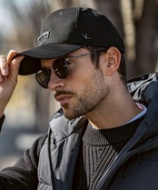 レザープレートにメタルロゴを立体的に配置した6パネルキャップ。