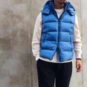 やや広めのステッチでレトロ感を演出しながら、コンパクトなサイズにすることで都会的な表情にブラッシュアップしたダウンベスト。