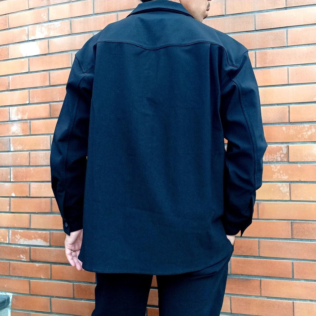 着心地の軽さとスポーティな雰囲気が特徴的なコンフォータブル(快適)な素材のシャツジャケット。高反発ストレッチ、軽量でソフトな肌触り、防シワ、ウォッシャブルの高機能素材です。両脇にはシームポケット付き、同素材でリラックスイージーパンツも展開中です。