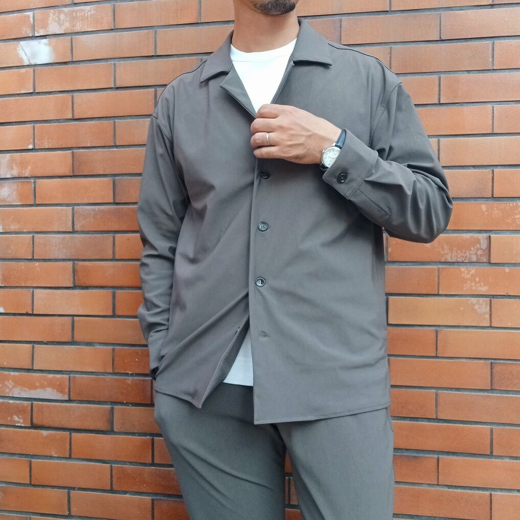 着心地の軽さとスポーティな雰囲気が特徴的なコンフォータブル(快適)な素材のシャツジャケット。高反発ストレッチ、軽量でソフトな肌触り、接触冷感、UVカットの高機能素材です。両脇にはシームポケット付き、同素材でリラックスイージーパンツも展開中です。