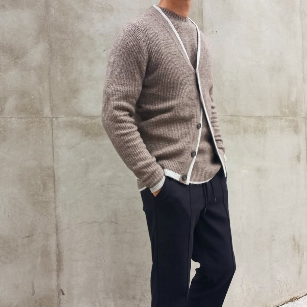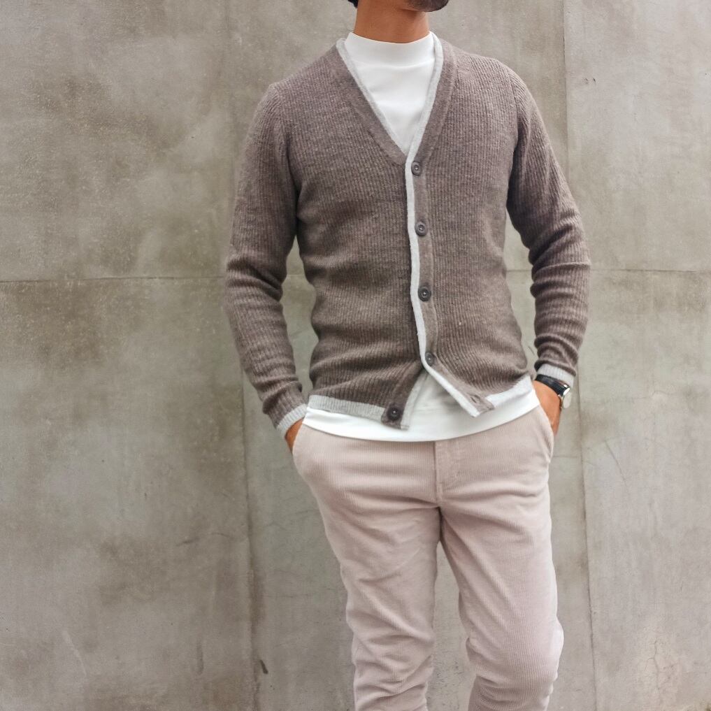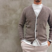 極上のリラックスタイムを約束してくれる、軽くふわりと空気を含んだニットカーディガン。見た目に漂うウォーム感だけでなく、Tシャツの上から重ねて着たときの肌触りの良さをも感じられることでしょう。配色ラインが爽やかなアクセントに映える。顔周りをすっきりと爽やかに魅せてくれるVネックデザイン。生地にアクリルを入れる事で軽さのあるニットに仕上げました。秋冬はもちろん春先までニットです。ユニセックスでの着用もオススメです。