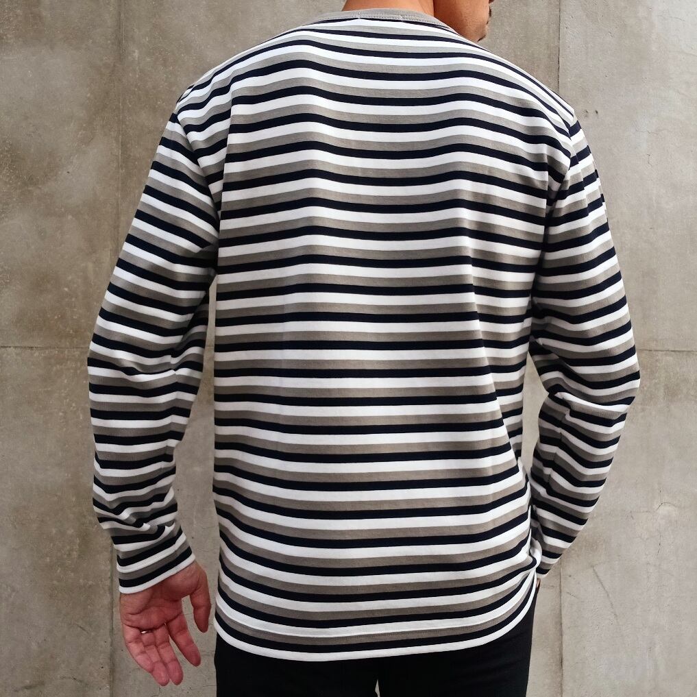 程よいゆとりで、キレイ目スタイルにマッチする長袖ボーダーです。