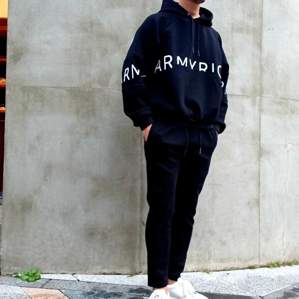 ARMYRICHの「ボンディングロゴパーカーセットアップ」は、軽やかで保温性に優れたボンディング生地を使用し、快適な着心地を実現。 ややオーバーサイズのフーディーは体型を拾わずリラックス感のあるシルエットで、小顔効果も◎。表面は密に織られているため防風性が高く、肌寒い季節にも最適です。