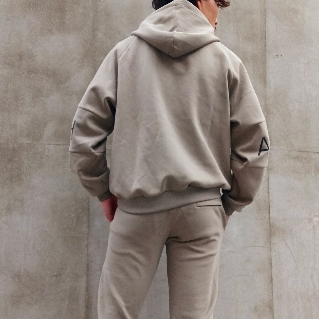ARMYRICHの「ボンディングロゴパーカーセットアップ」は、軽やかで保温性に優れたボンディング生地を使用し、快適な着心地を実現。 ややオーバーサイズのフーディーは体型を拾わずリラックス感のあるシルエットで、小顔効果も◎。表面は密に織られているため防風性が高く、肌寒い季節にも最適です。