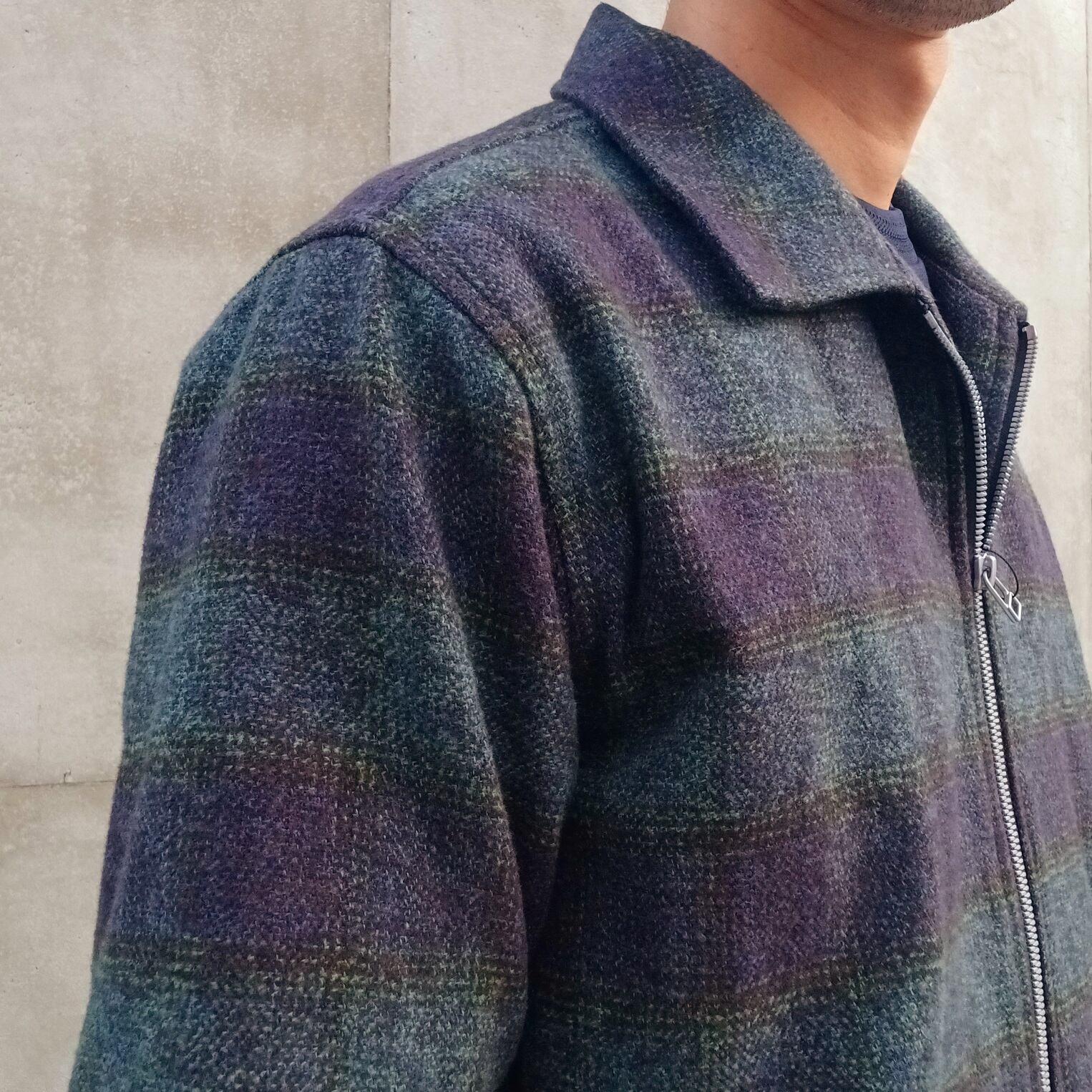今回は、アメカジブームもあり、定番のドリズラーを厚みのあるオンブレチェックの起毛素材を使って、シンプルなデザインのジャケットに仕上げています。素材にもこだわり、3色の糸から1本の糸を撚った「三つ」糸を使用した『クロモア』を使っており、深みのあるメランジ感がウールのような上質感を醸し出す高級素材を使用。また、表面は軽く起毛加工してあり、温かみのある肌触りが大人っぽい。ジッパーは、上下開閉のダブルジッパー仕様なので、様々なスタイリングのアレンジが楽しめます。パンツも太めのパンツでも、デニムでも、スエットパンツを合わせても良い。2025年のトレンド感あるスタイリングにぜひ使ってみて下さい。