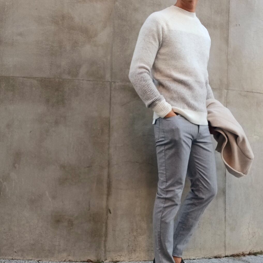 ホワイトカラーをベースに3色(グレー、ベージュ、ブラウン)のマルチカラーボーダーが目を惹く1枚。生地にアクリルを入れる事で軽さのあるニットに仕上げました。秋冬はもちろん春先までニットです。ユニセックスでの着用もオススメです。