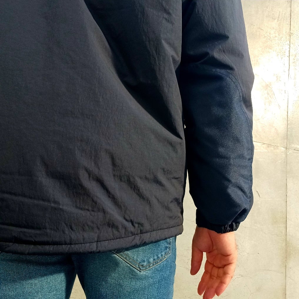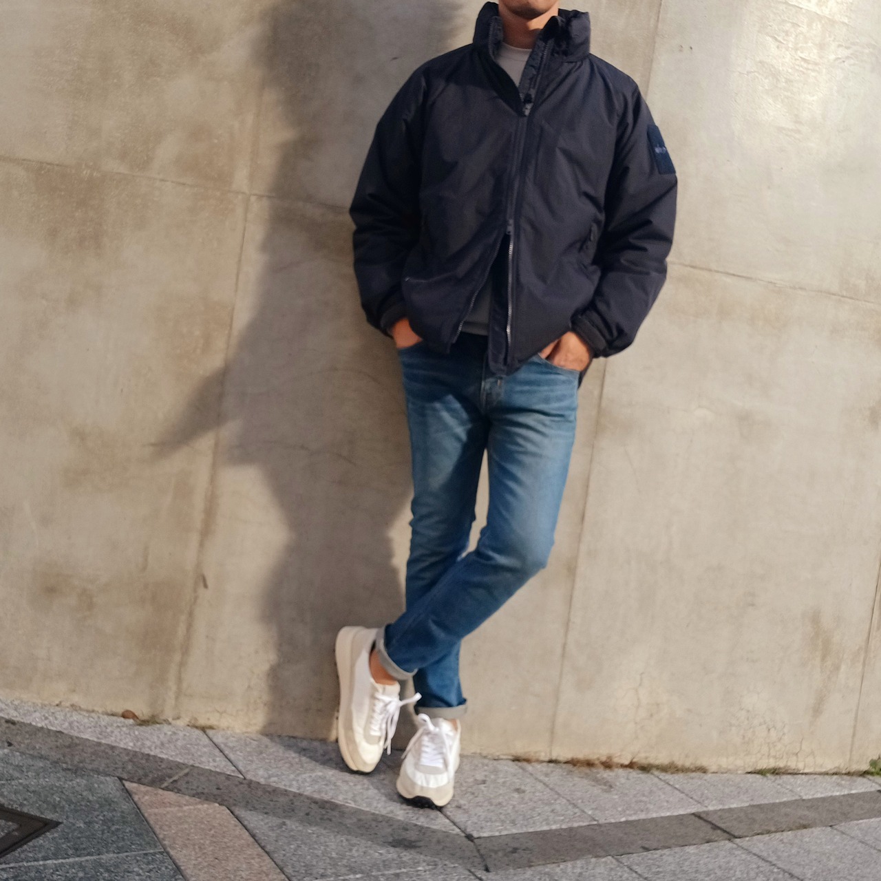 近年の日本の気候や、レイヤードし易さ、脱いだ時や収納時にかさばらないことに配慮して中綿量を調整しており、オーバーサイズながら膨らみすぎないスッキリしたシルエット。