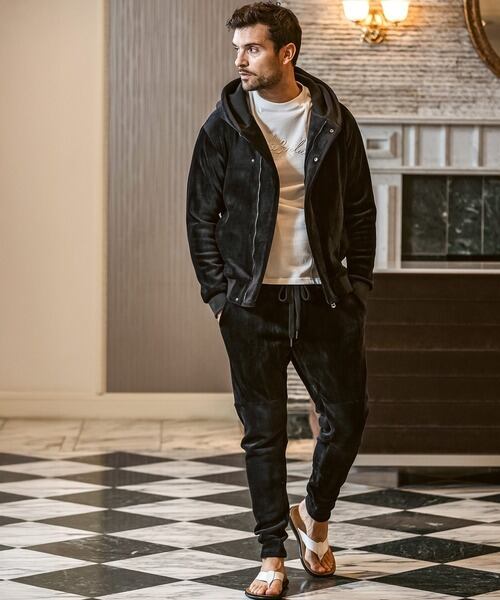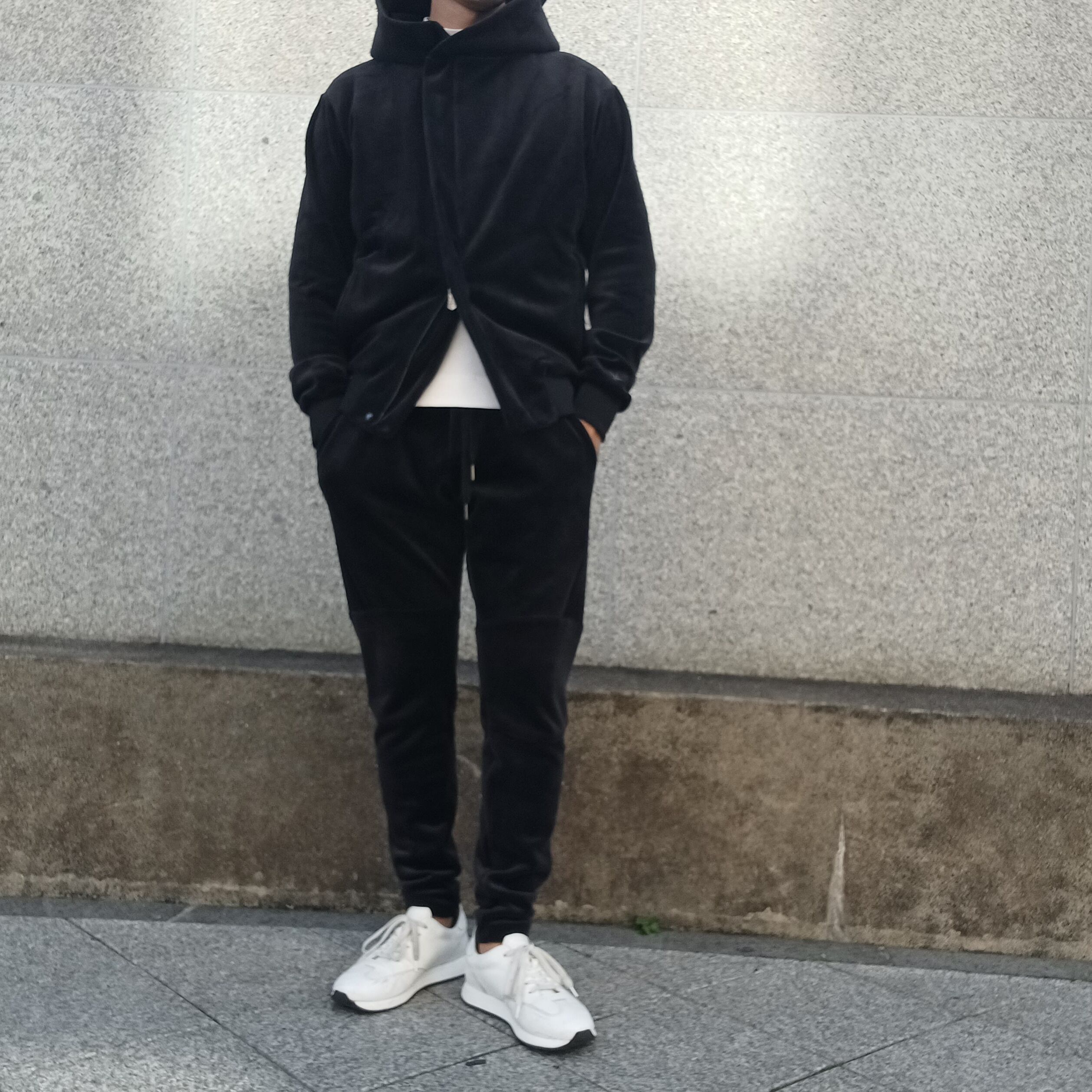 <セットアップ着用可>1PIU1UGUALE3 RELAX ヘビーベロア テーパードシルエット サルエルジョガーパンツ / ブラック