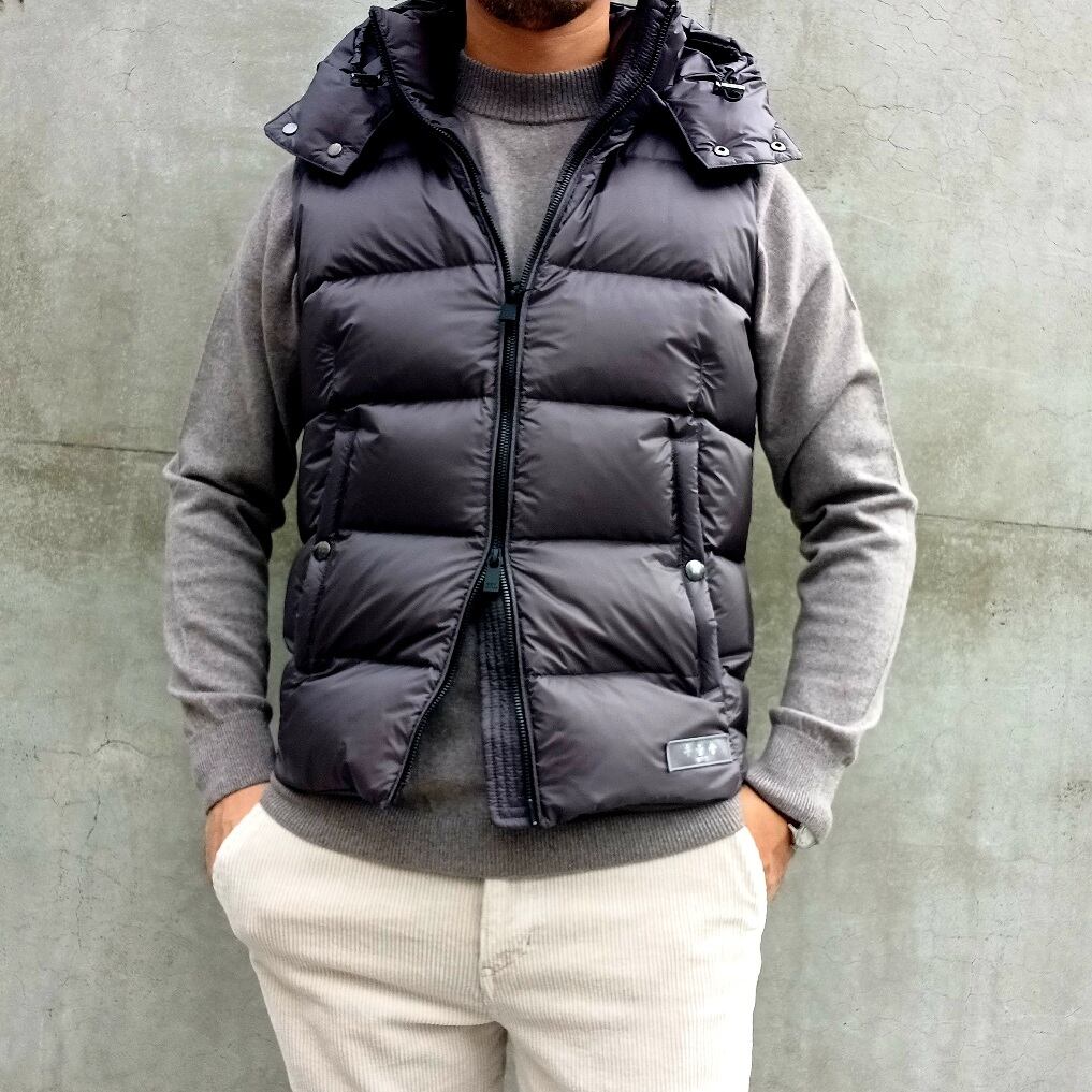 シンプルながら洗練されたデザインで、1枚での着用はもちろん、シャツとのレイヤードにもおすすめ。