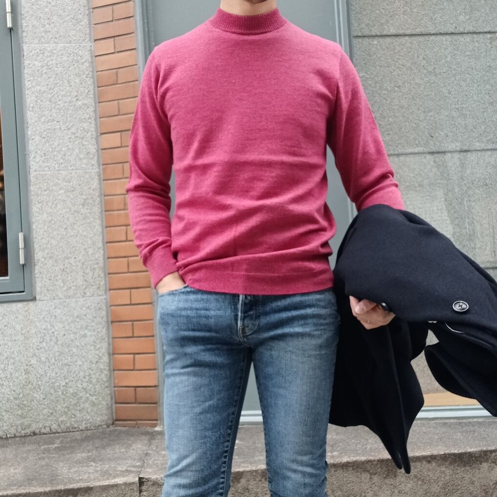 一度着ると虜になると評判の「沼ネック」は、クルーネック以上・モックネック未満の絶妙な高さが魅力。