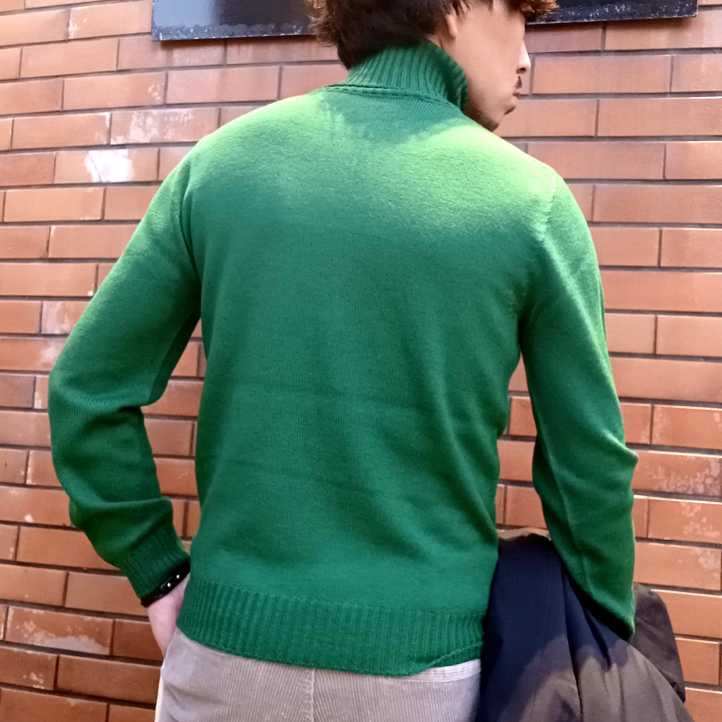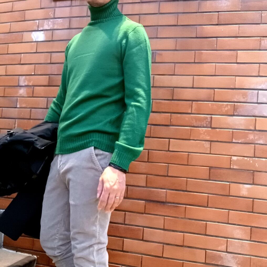 今回ご紹介のタートルネックニットは、「cash wool」(キャッシュウール)と言われる高級素材を使ったウールで作られており、その名の通りカシミヤのようなしっとりとなめらかな肌触り。「cash wool」(キャッシュウール)とは オーストラリアの厳選された最高級羊毛のエクストラファイン(19.5マイクロン)を原料とし、ゼニア・バルファ社で開発された特殊加工によって防縮糸ながら「カシミヤのような」柔らかさ、ふくらみ、光沢を実現し、メリノ・ウールのニット糸の最高品質として世界中で認められています。編みは継ぎ目のないホールガーメント製法ですので、着た時のつっぱりなども無く、ストレスの無い着心地。ベーシックなタートルネックですのでインナー使いもしやすくおすすめです。