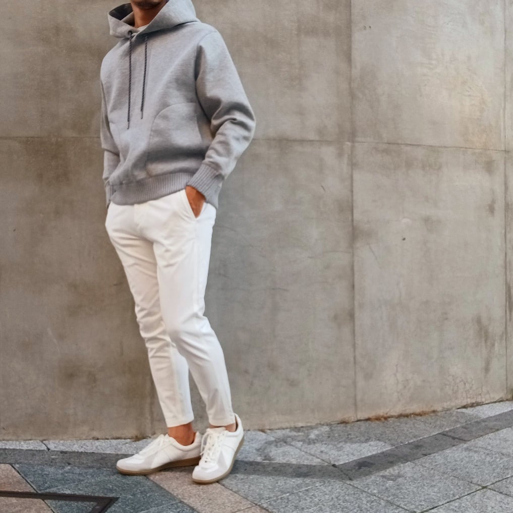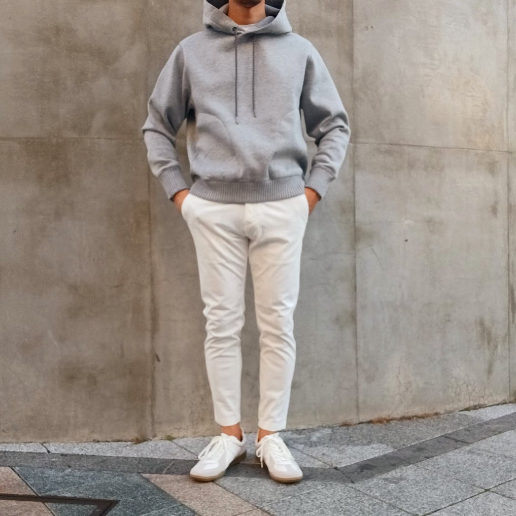 フラットで高見えする素材感がクリーンな印象を与えてくれる素材です。ディティールを省き、よりミニマルな見え方にし、サイズ感で雰囲気を出したデザインになっています。抜け感のある程良いゆとりのあるサイズ感が、今を感じさせるポイントになっています。