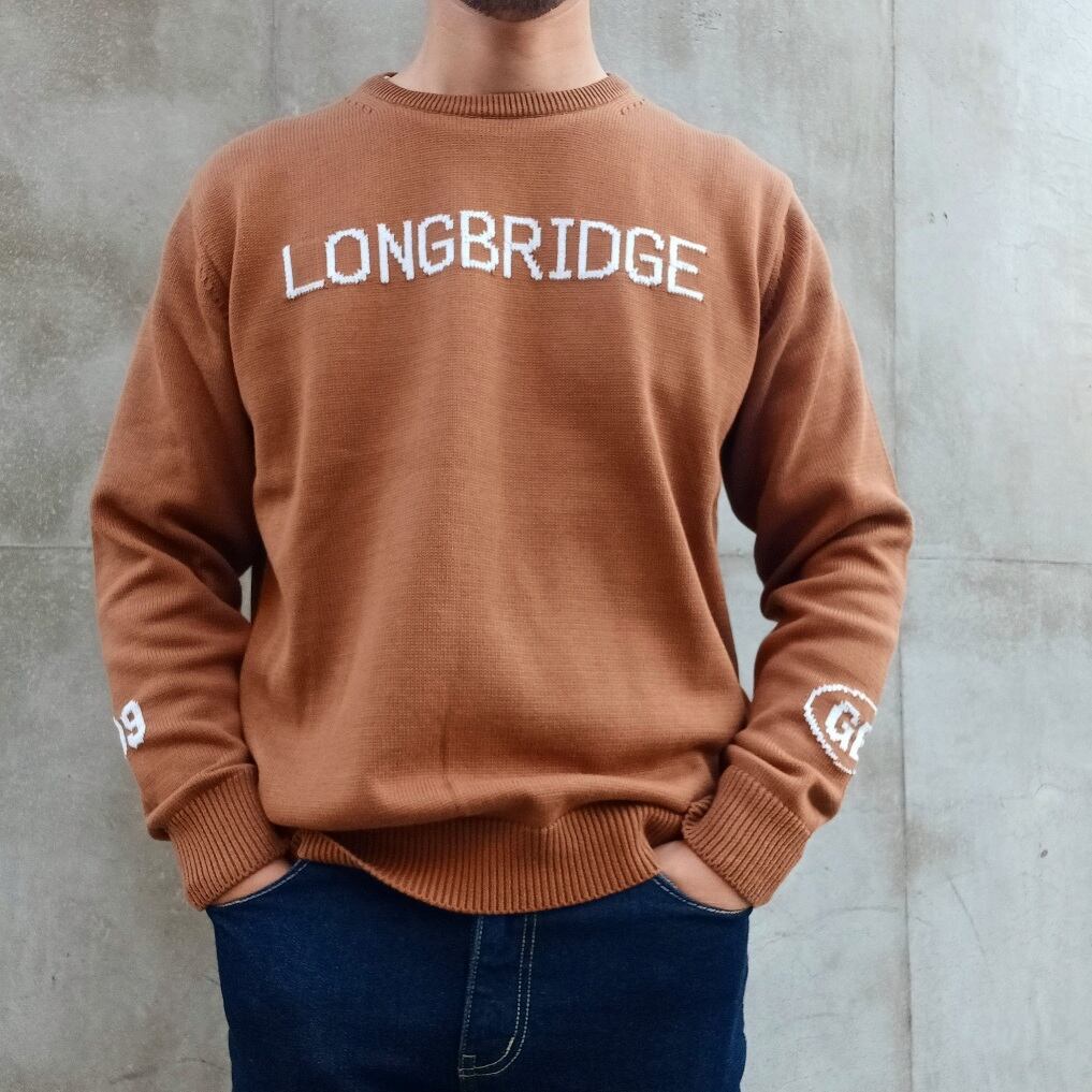 Rinascente(リナシェンテ) スウェットライククルーネックコットン"ロングブリッジ”ロゴニット / ブラウン
