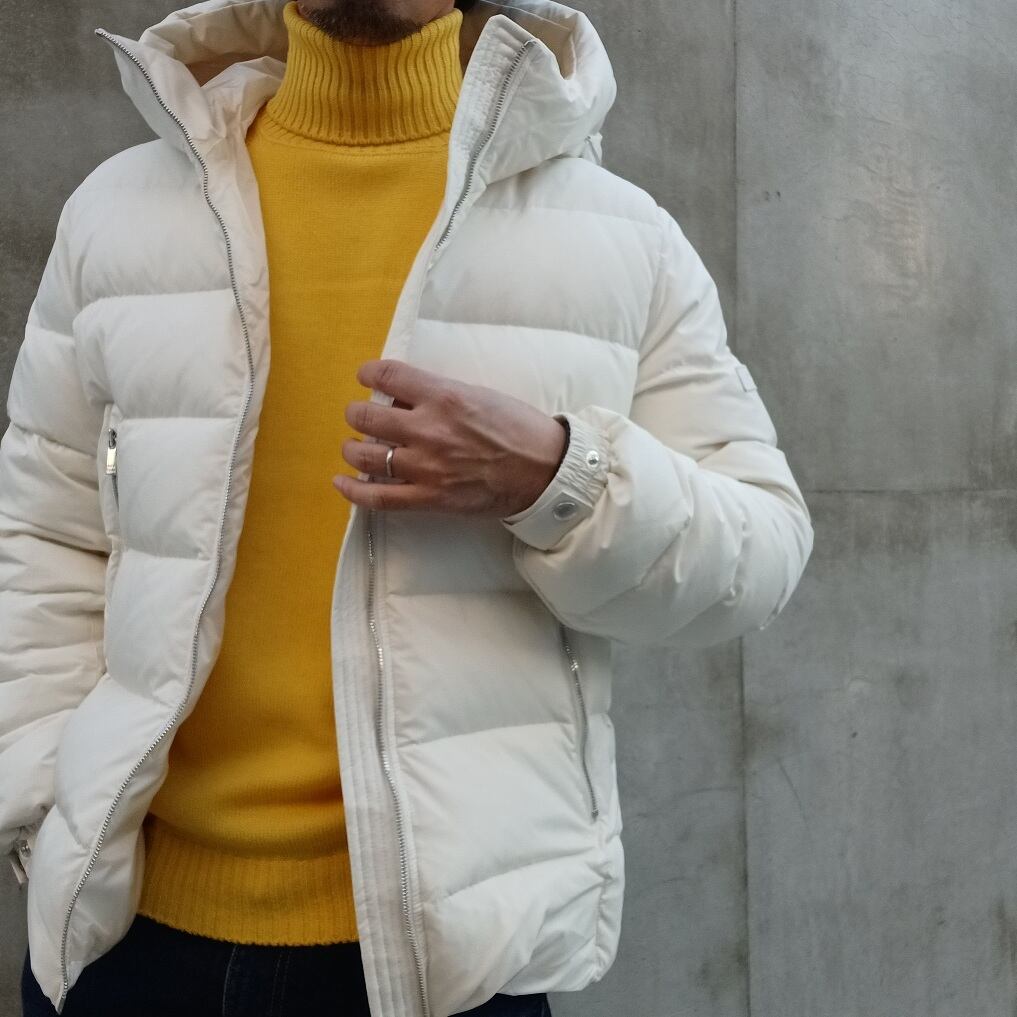 今回ご紹介のタートルネックニットは、「cash wool」(キャッシュウール)と言われる高級素材を使ったウールで作られており、その名の通りカシミヤのようなしっとりとなめらかな肌触り。「cash wool」(キャッシュウール)とは オーストラリアの厳選された最高級羊毛のエクストラファイン(19.5マイクロン)を原料とし、ゼニア・バルファ社で開発された特殊加工によって防縮糸ながら「カシミヤのような」柔らかさ、ふくらみ、光沢を実現し、メリノ・ウールのニット糸の最高品質として世界中で認められています。編みは継ぎ目のないホールガーメント製法ですので、着た時のつっぱりなども無く、ストレスの無い着心地。ベーシックなタートルネックですのでインナー使いもしやすくおすすめです。