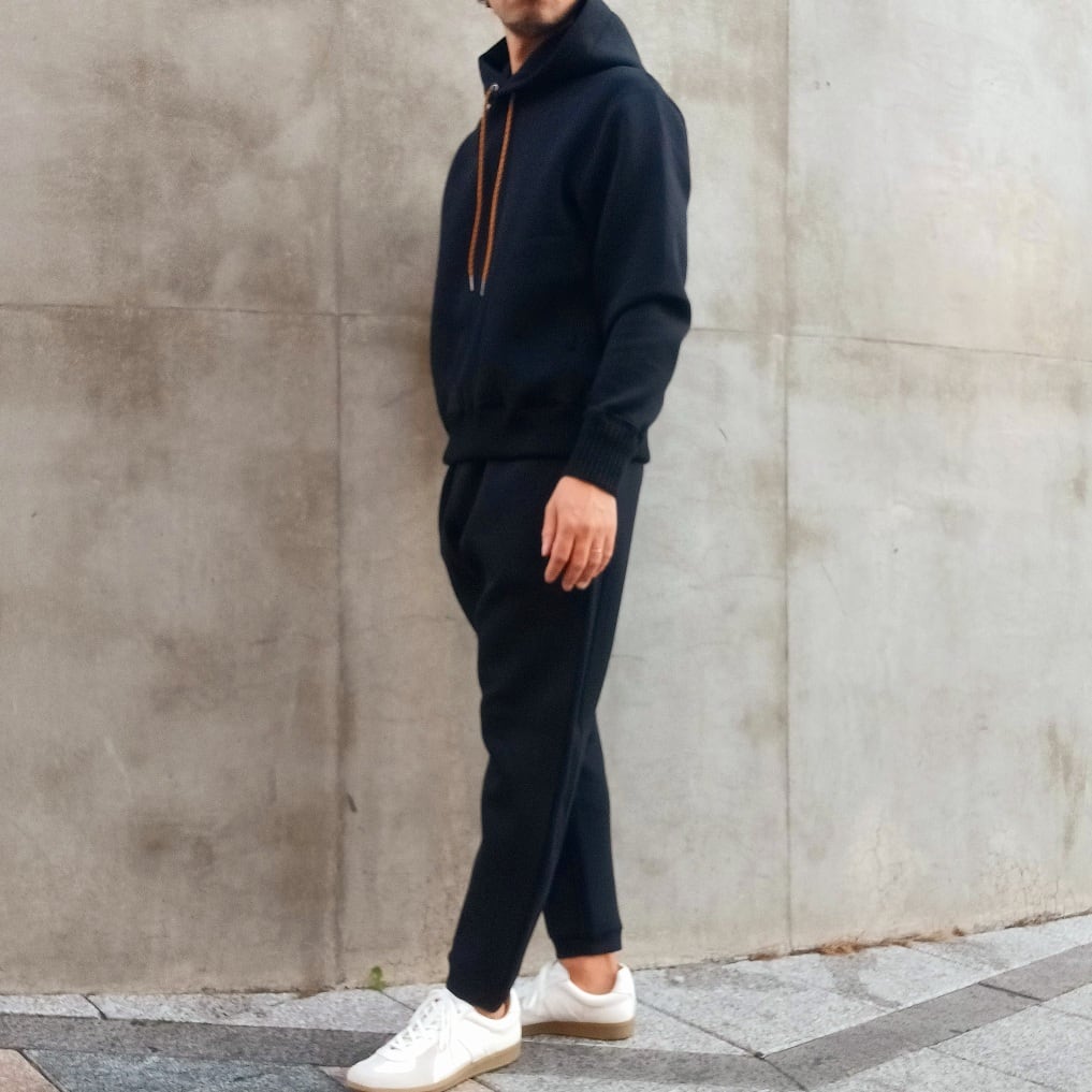 フラットで高見えする素材感がクリーンな印象を与えてくれる素材です。ディティールを省き、よりミニマルな見え方にし、サイズ感で雰囲気を出したデザインになっています。抜け感のある程良いゆとりのあるサイズ感が、今を感じさせるポイントになっています。