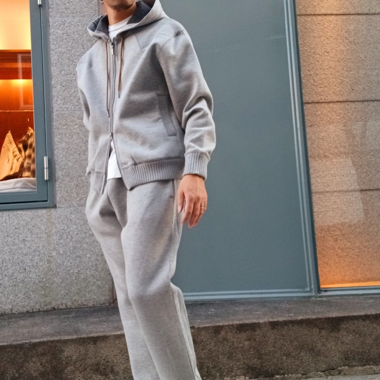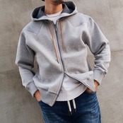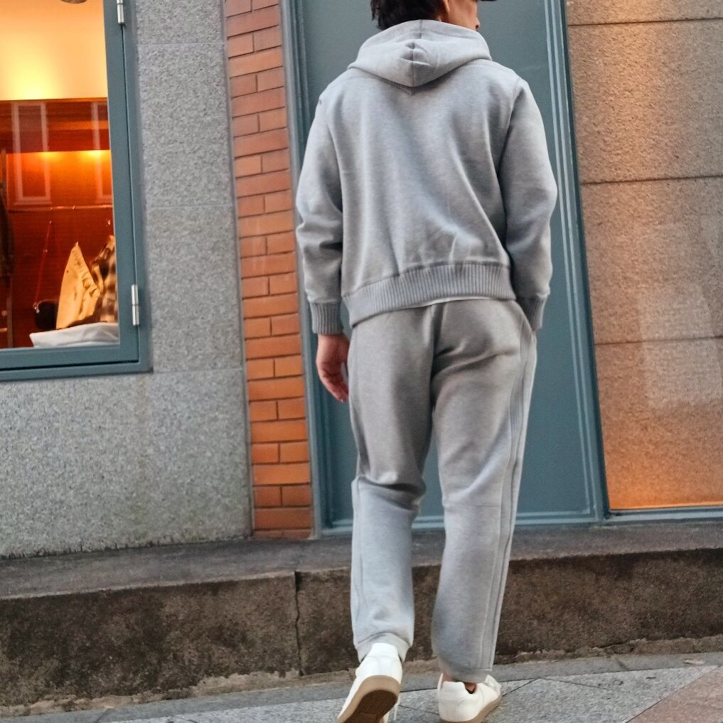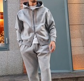 フラットで高見えする素材感がクリーンな印象を与えてくれる素材です。ディティールを省き、よりミニマルな見え方にし、サイズ感で雰囲気を出したデザインになっています。抜け感のある程良いゆとりのあるサイズ感が、今を感じさせるポイントになっています。