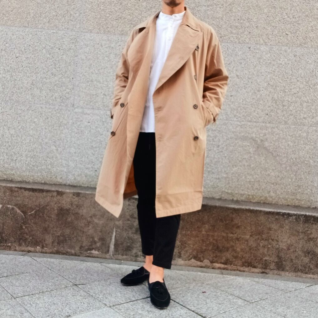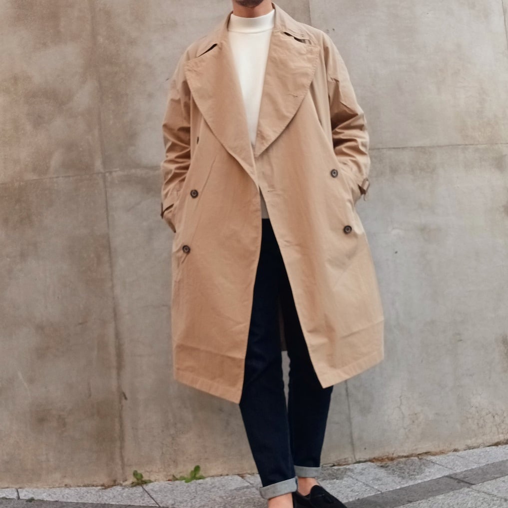 王道なトレンチコートのスタイルをベースにしつつ、今の空気感を纏ったオーバーサイズシルエットにアップデートしたアイテム。
