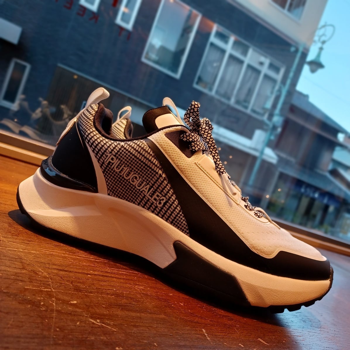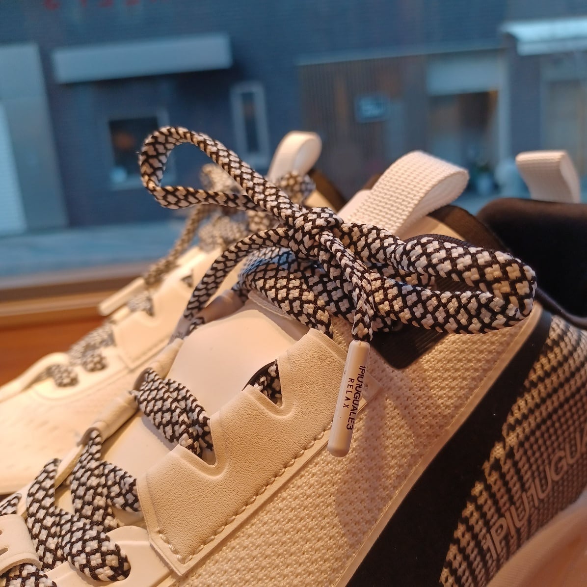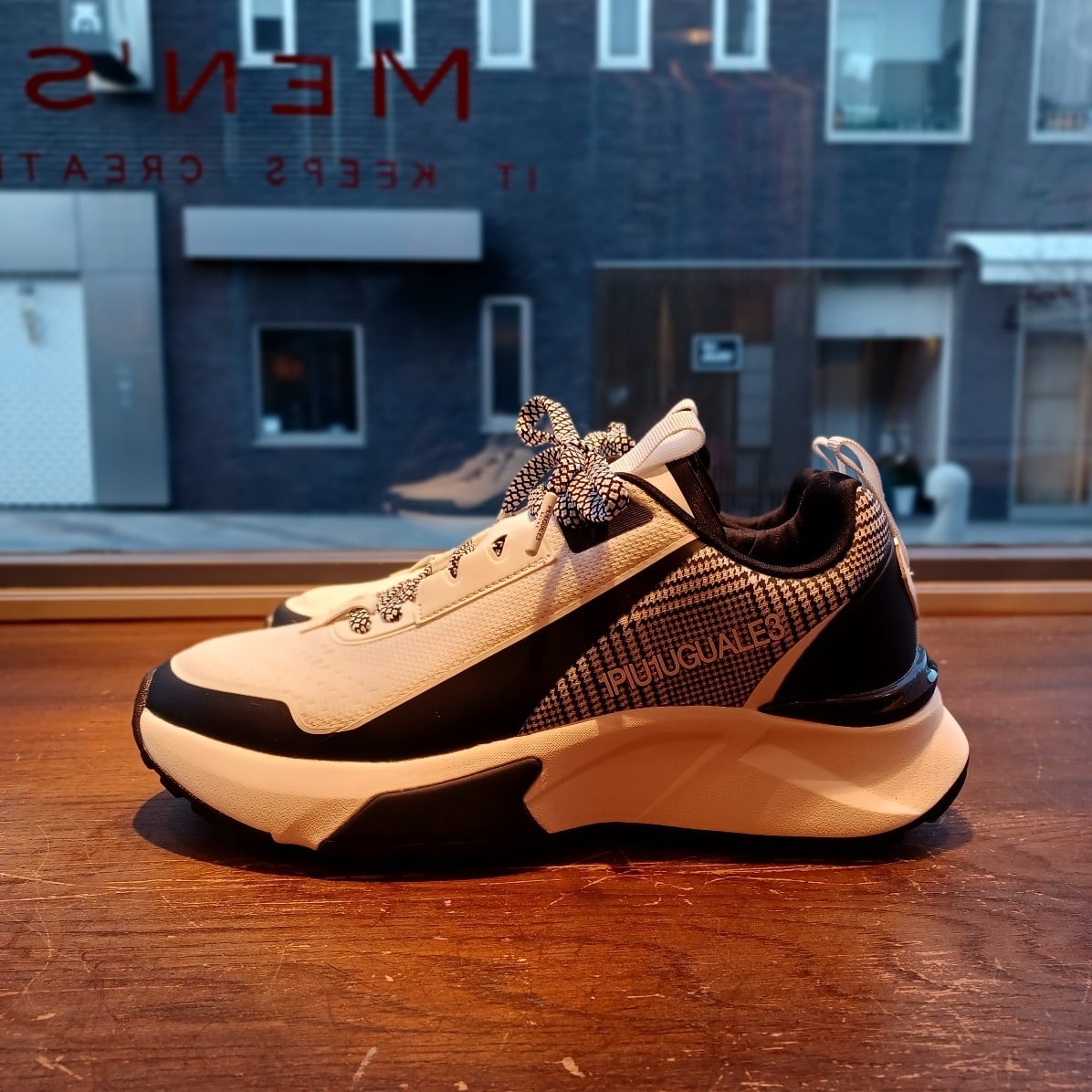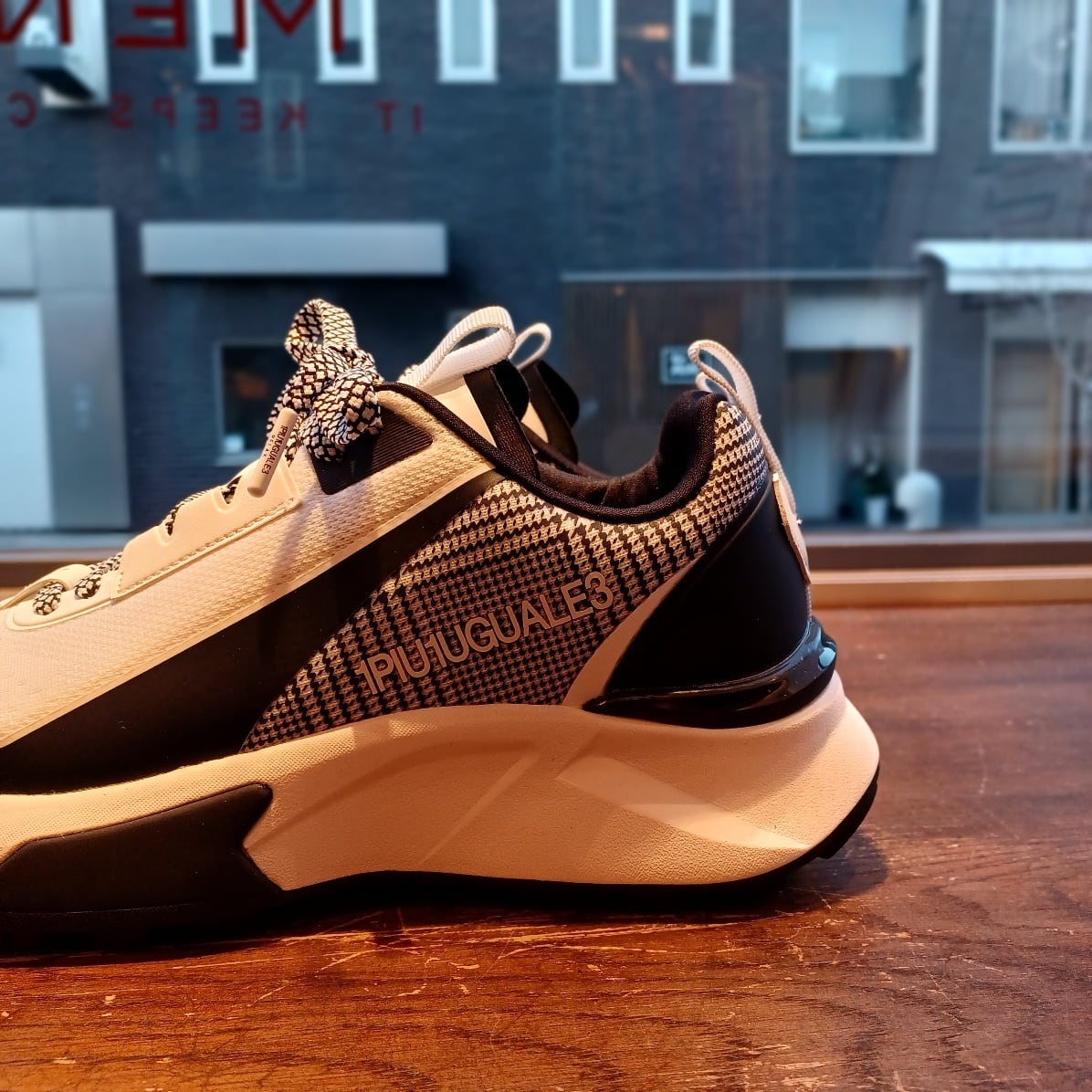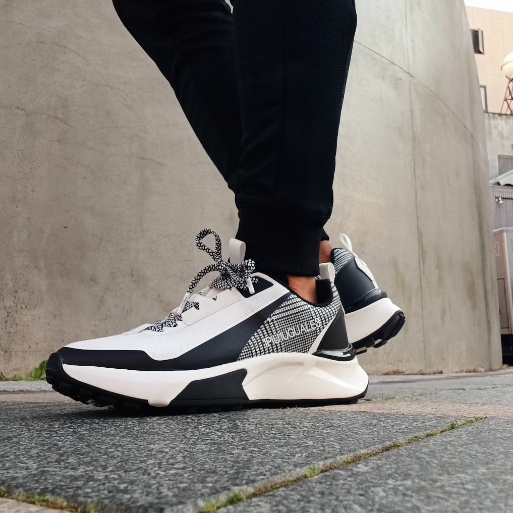 1PIU1UGUALE3 RELAXからこの春注目のグレンチェック柄をあしらったロゴスニーカーの登場。1PIU1UGUALE3 LOGOが際立つラグジュアリースニーカー。ソールには衝撃吸収を取り入れ、クッション性と軽量感を向上。ビジュアルのみならず機能面にもこだわった、大人のラグスポスタイルを引き立てる一足です。