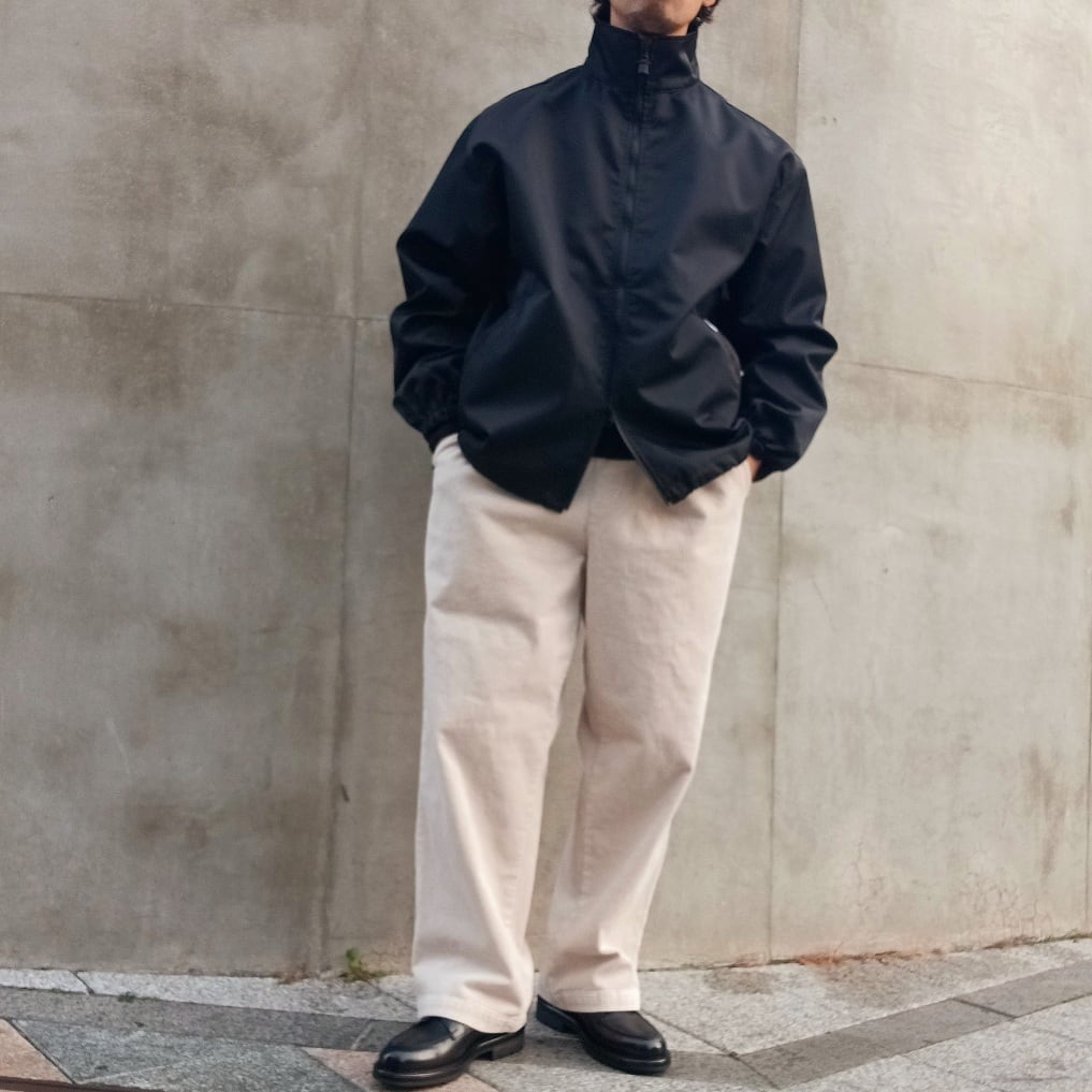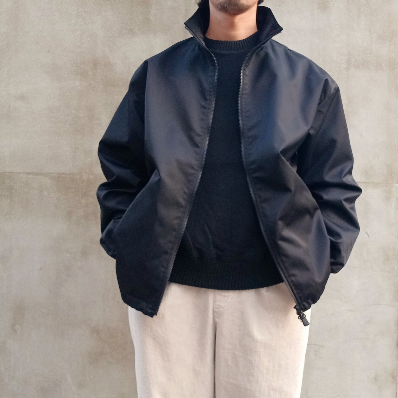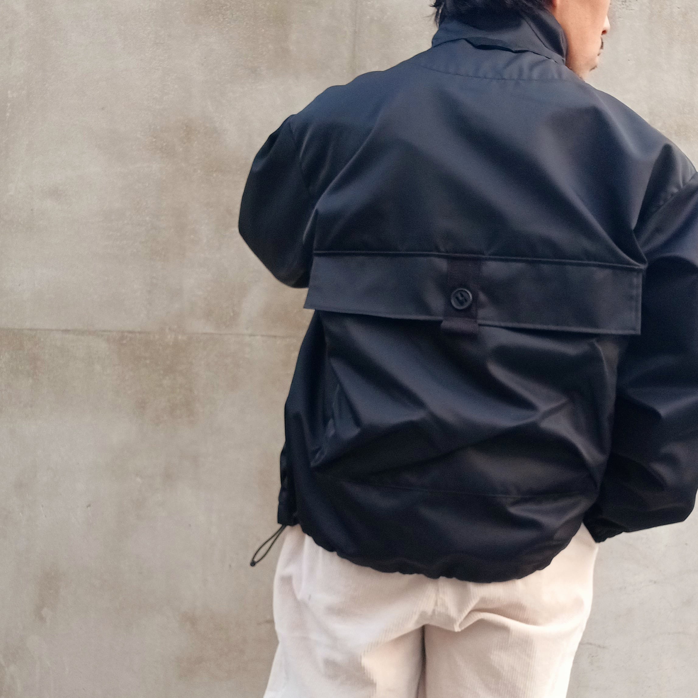 ハリのあるツイードナイロン使用のオーバーサイズスタンドブルゾン。後身の大きなポケットが特徴で、裾はスピンドル入りで着丈の調整ができます。色々なスタイリングに提案できる新アイテム。ゆとりある身幅やアームホールなど、ぱっと羽織るだけでトレンド感溢れるオーバーサイズシルエットにアレンジ。また裾はドローコードを採用したことで、シルエット調節が可能。シーンに合わせて変化を楽します。