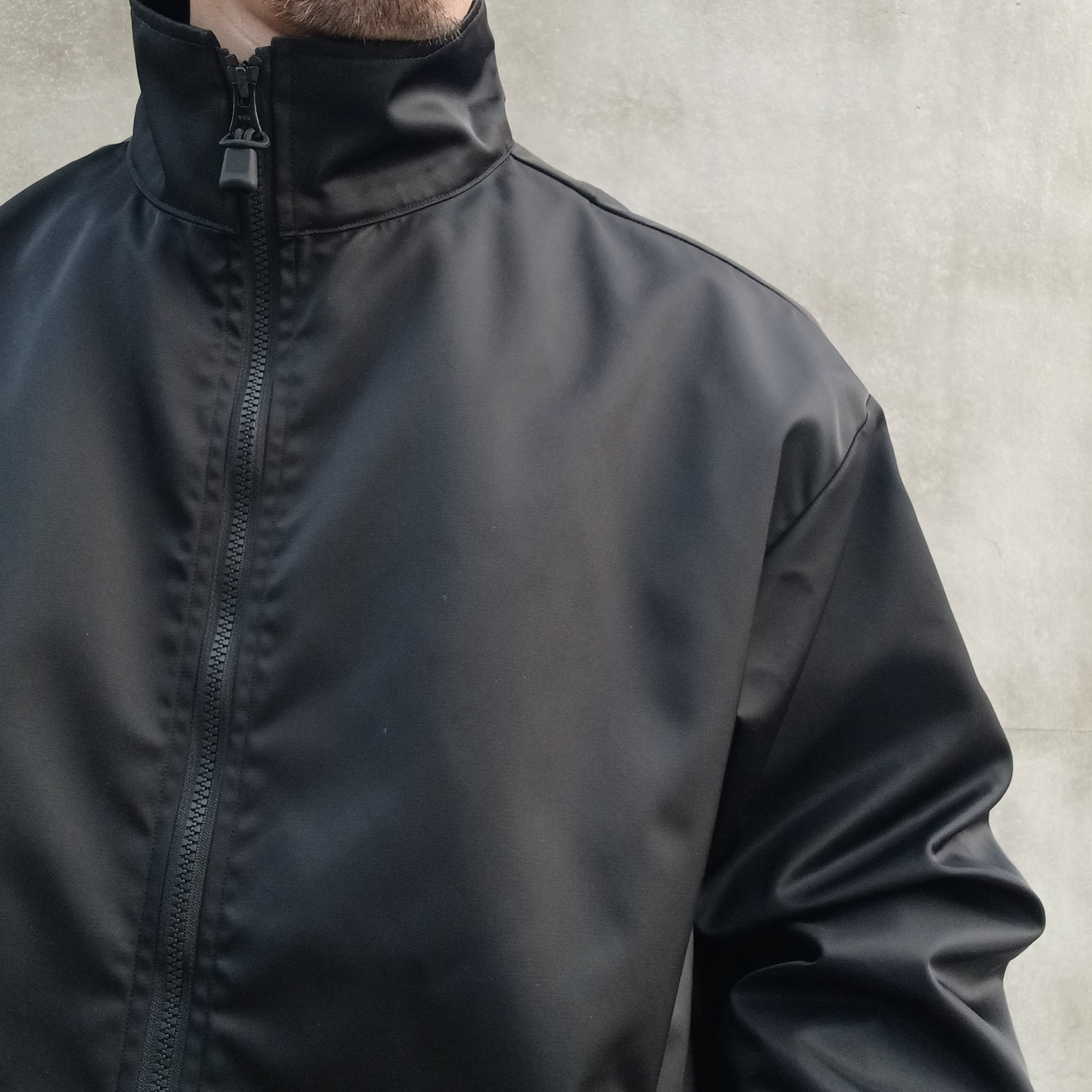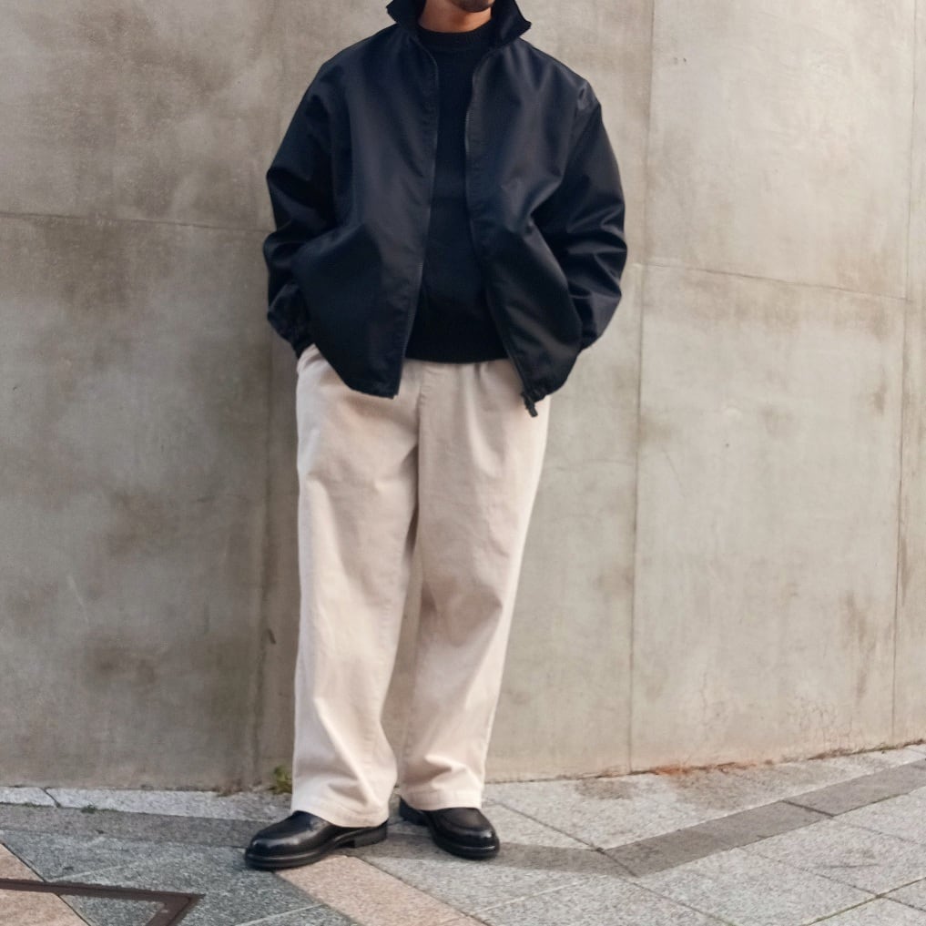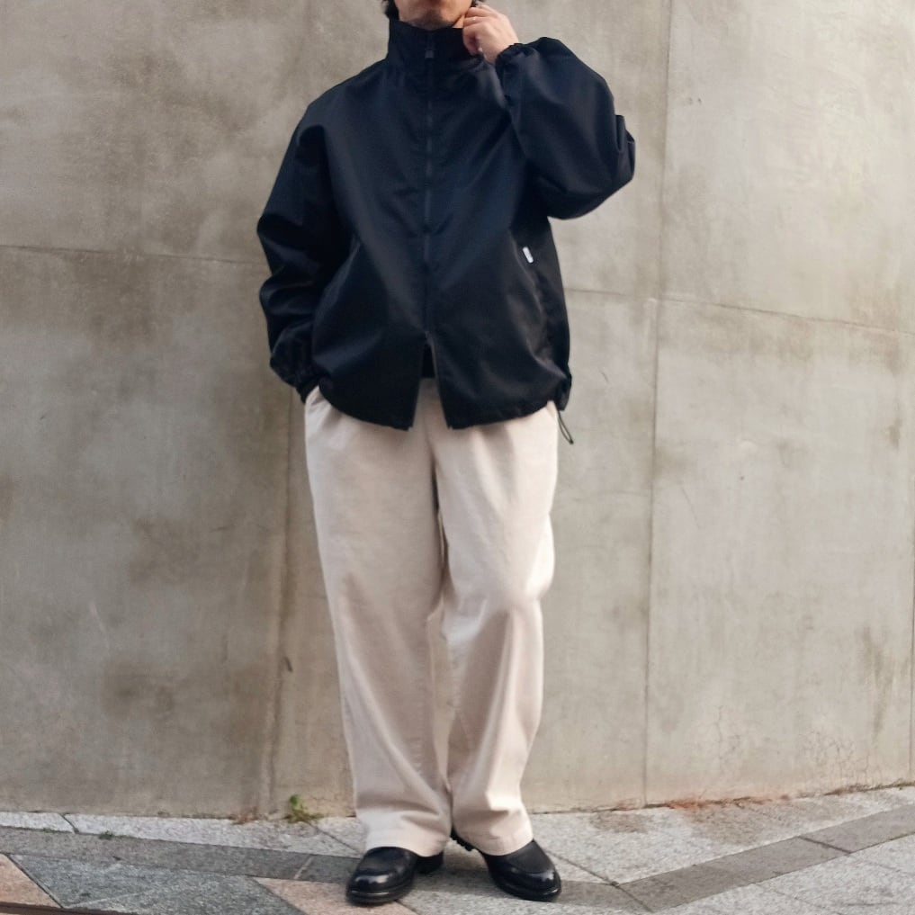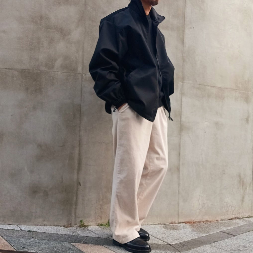 ハリのあるツイードナイロン使用のオーバーサイズスタンドブルゾン。後身の大きなポケットが特徴で、裾はスピンドル入りで着丈の調整ができます。色々なスタイリングに提案できる新アイテム。ゆとりある身幅やアームホールなど、ぱっと羽織るだけでトレンド感溢れるオーバーサイズシルエットにアレンジ。また裾はドローコードを採用したことで、シルエット調節が可能。シーンに合わせて変化を楽します。