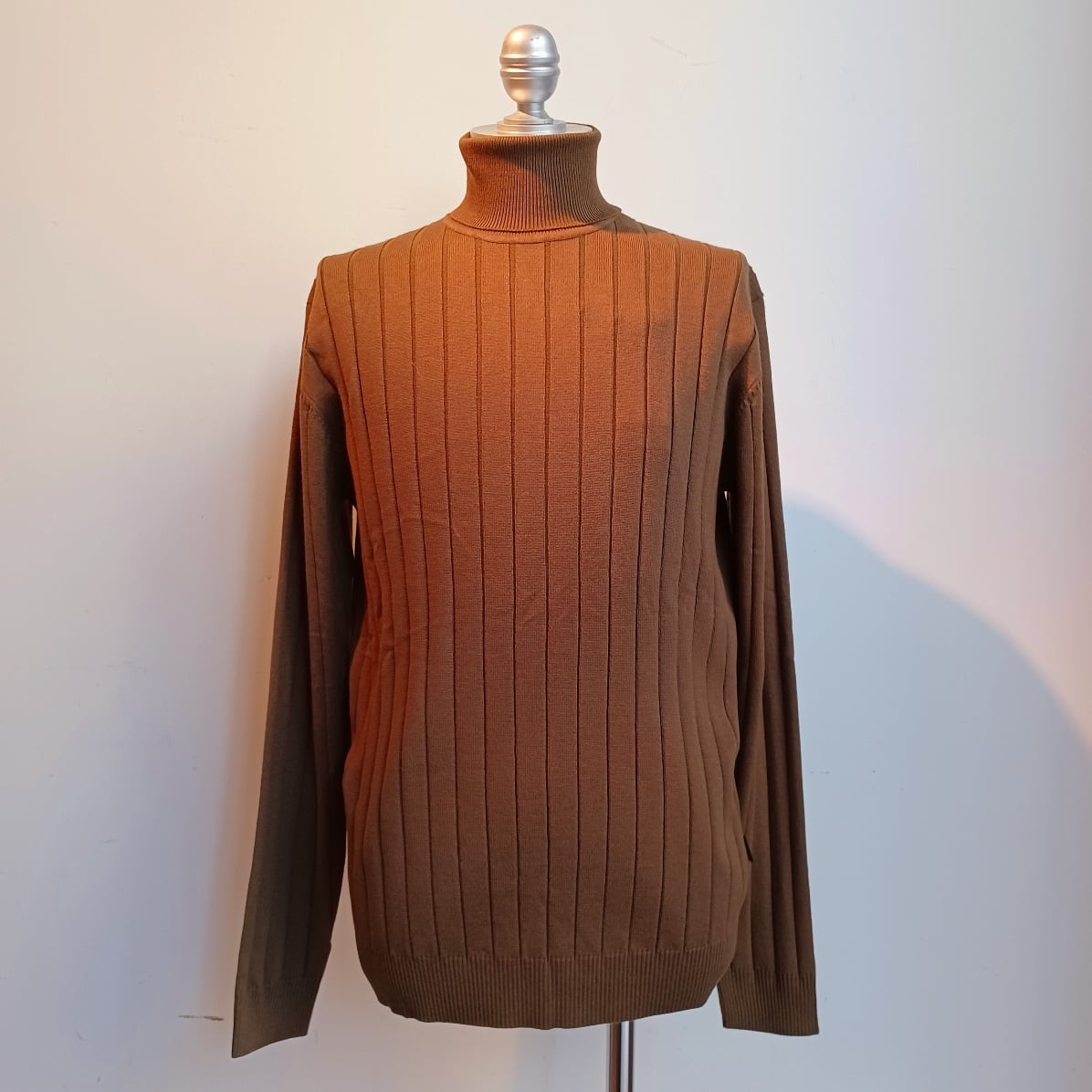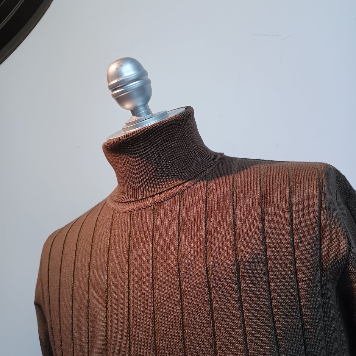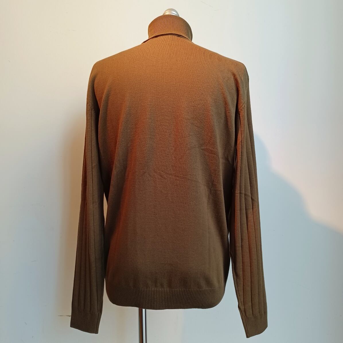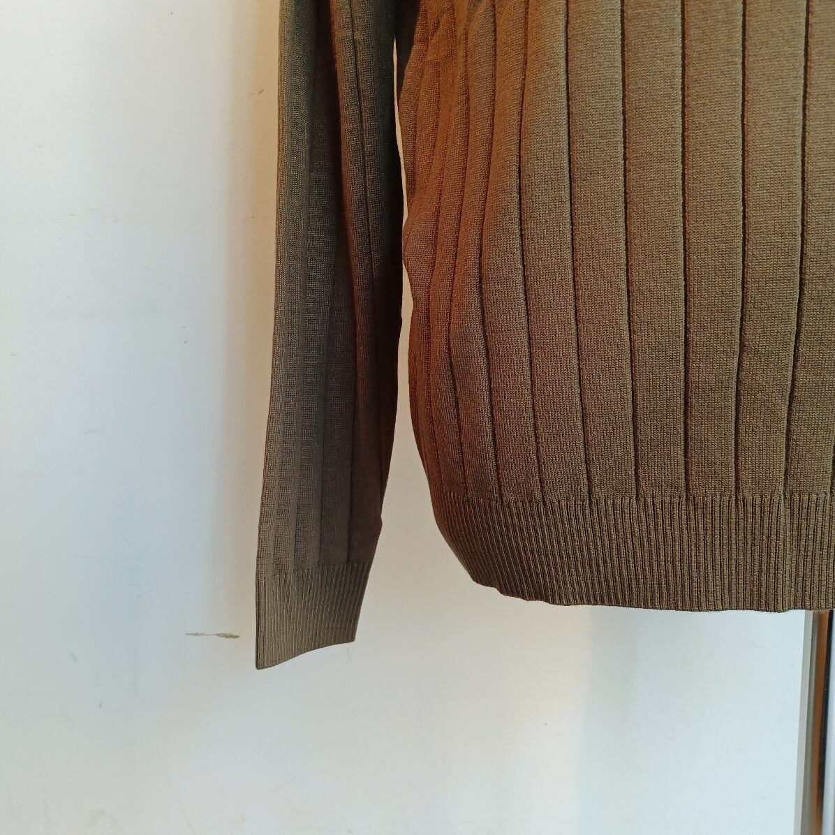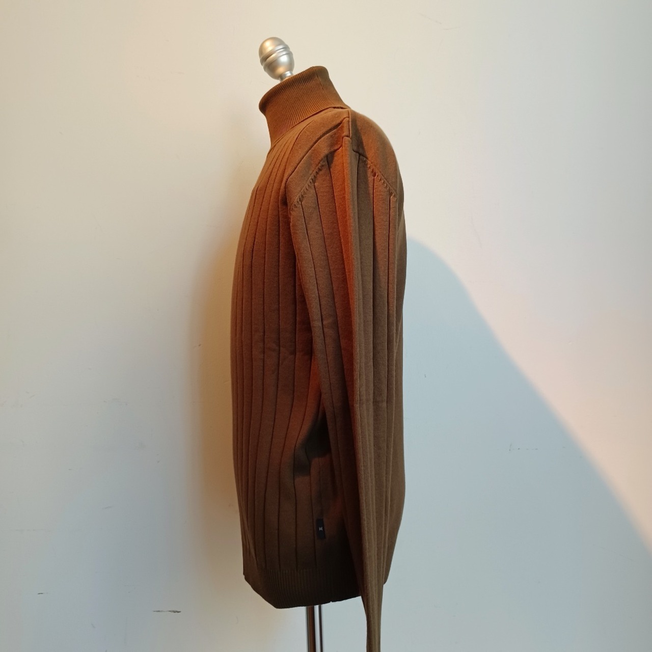 ソフトな風合いと着用時にチクチクしない素材。立体感のある縦模様の編地が上品な印象を表現しています。滑らかな肌触りで、厚みを抑えているのですっきり着こなせる素材です。