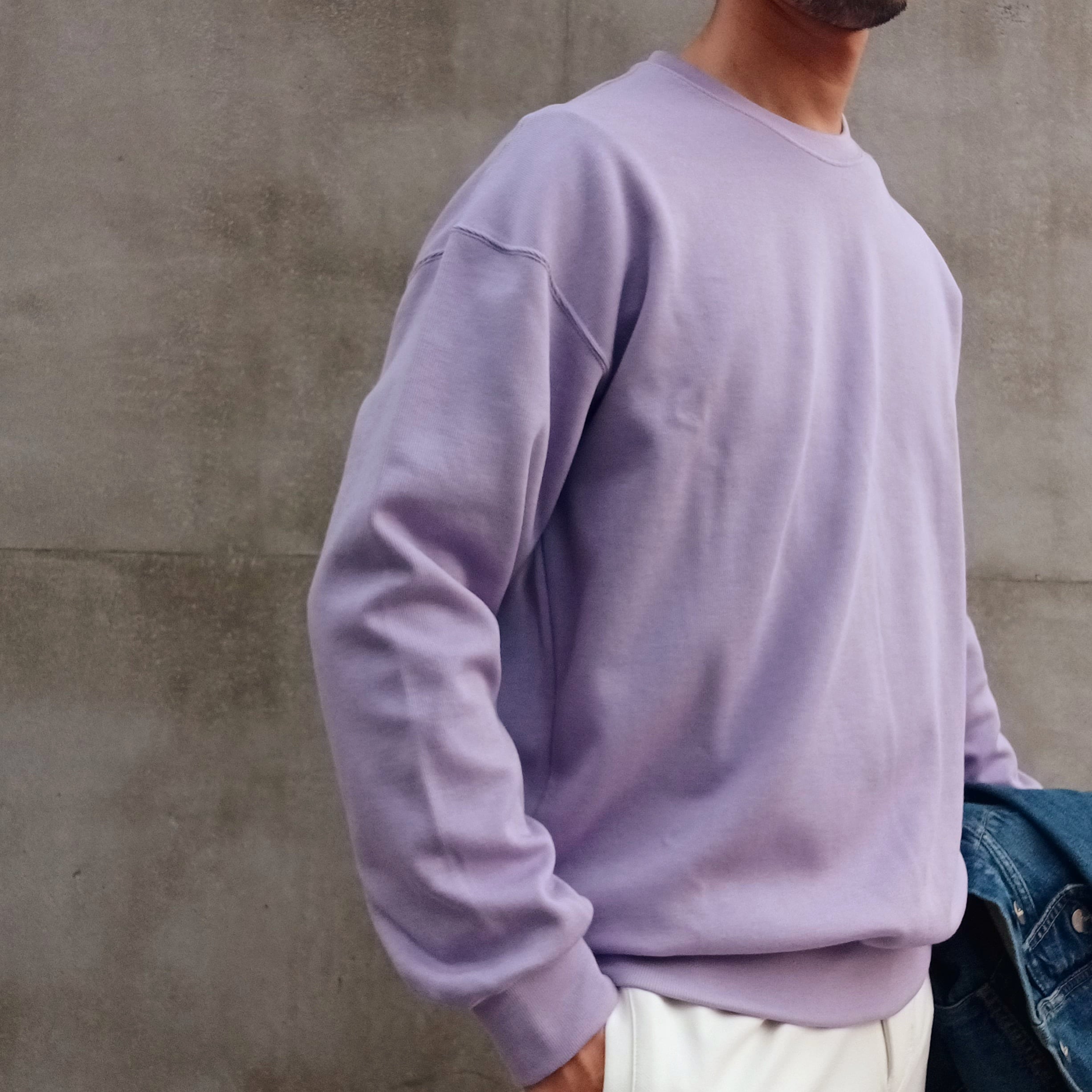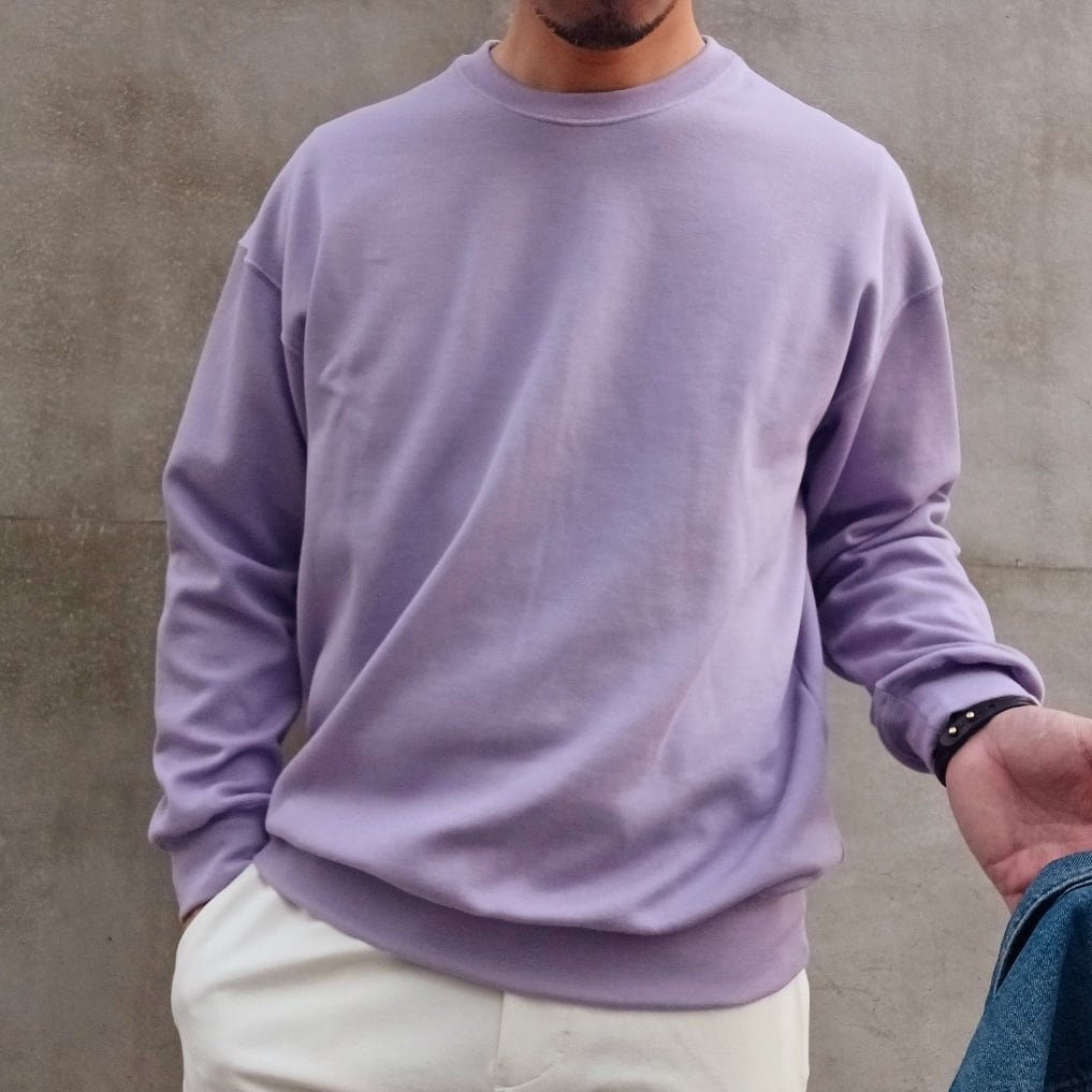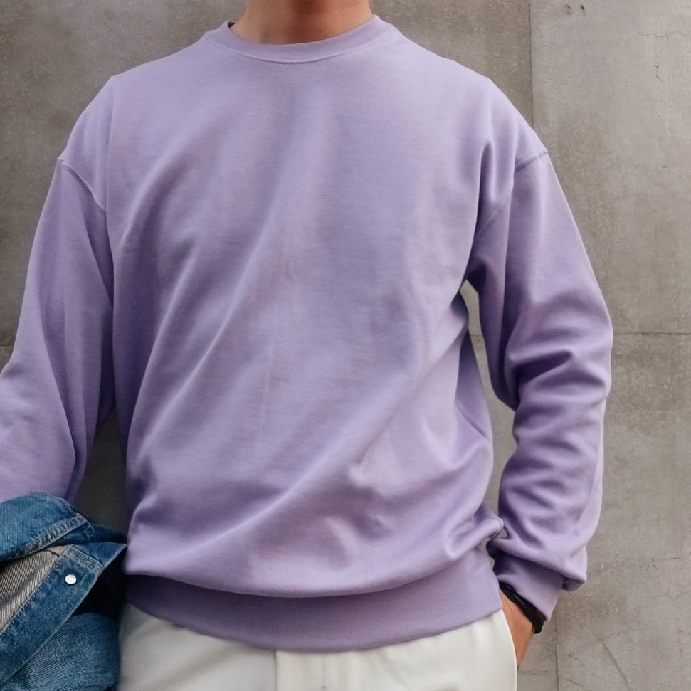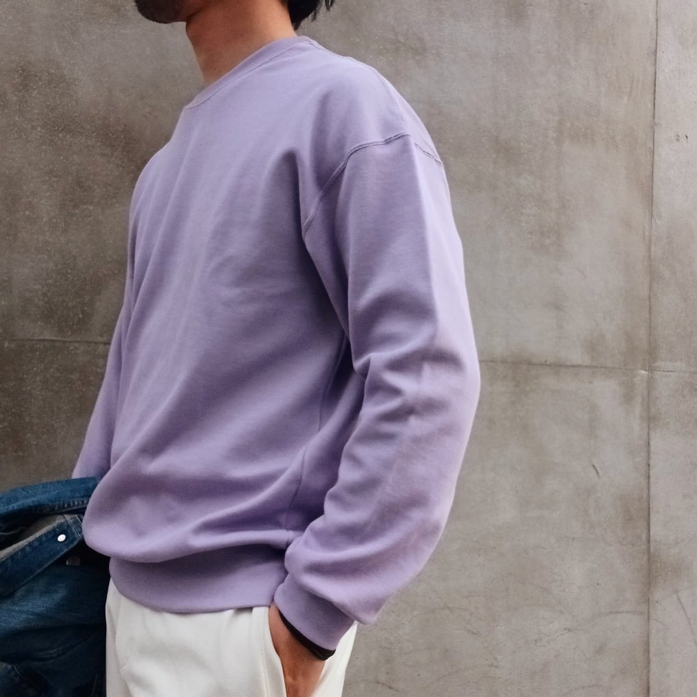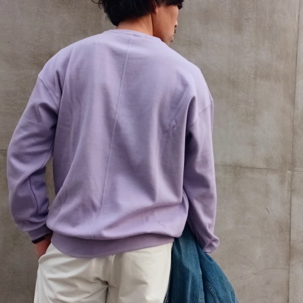 コットンベースにレーヨンの柔らかさとウール膨らみを加えたブレンド糸を使用した柔らか仕上げのニットクルーです。秋立ち上がりから長く着られるよう素材混率に拘った一着。