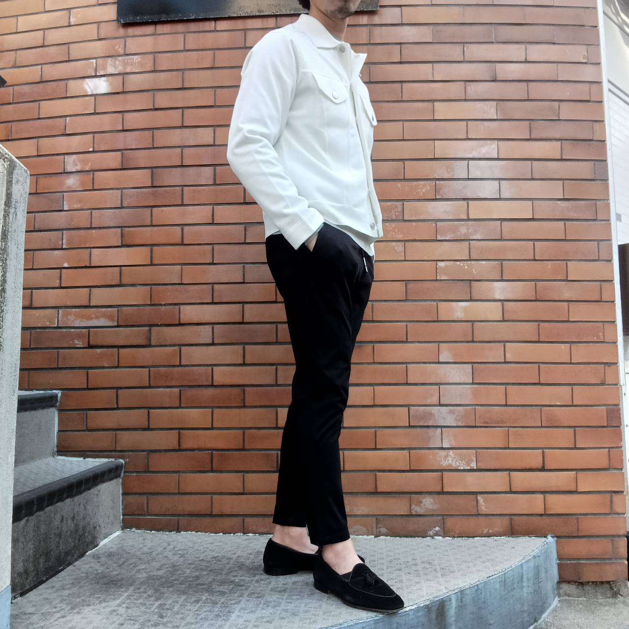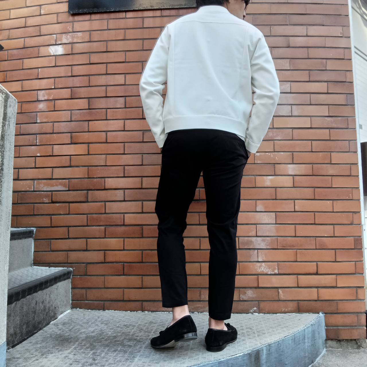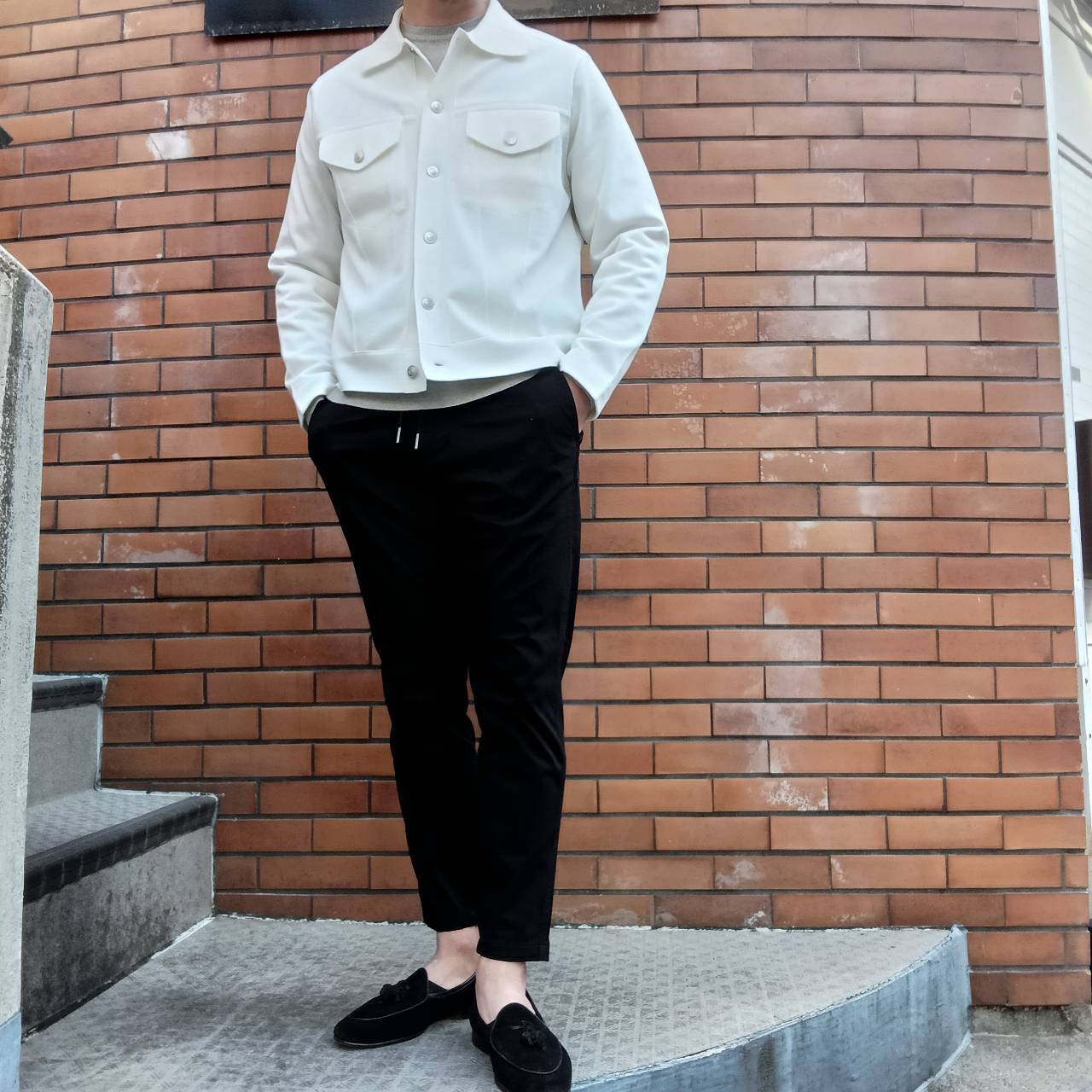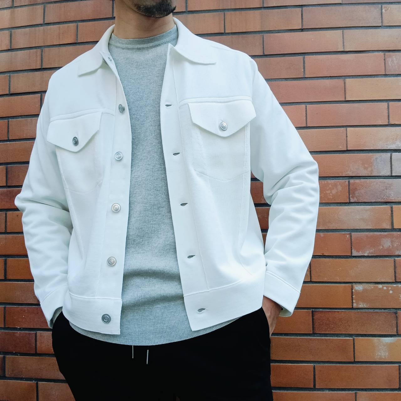 一見すると織物を縫って作製したブルゾンのようにカッチリとした存在感のある表情に仕上げながらも、着心地は「ニット」そのもので、生地が突っ張らずに体になじむ伸縮性やソフトな風合い、軽さなど、快適な着心地が魅力の1着です。表が綿素材で裏がポリエステルの二重編み。綿だけだとダラけてしまうのを裏のポリエステルがカバーしているので良い具合にハリコシが出て形をキープしてくれます。また、程よく厚みがあるため高級感もありライトアウターぐらいの保温感もございます。見栄えも良ければ着こなしやすさも◎非常にこの春いや年間通して活躍してくれそうです。