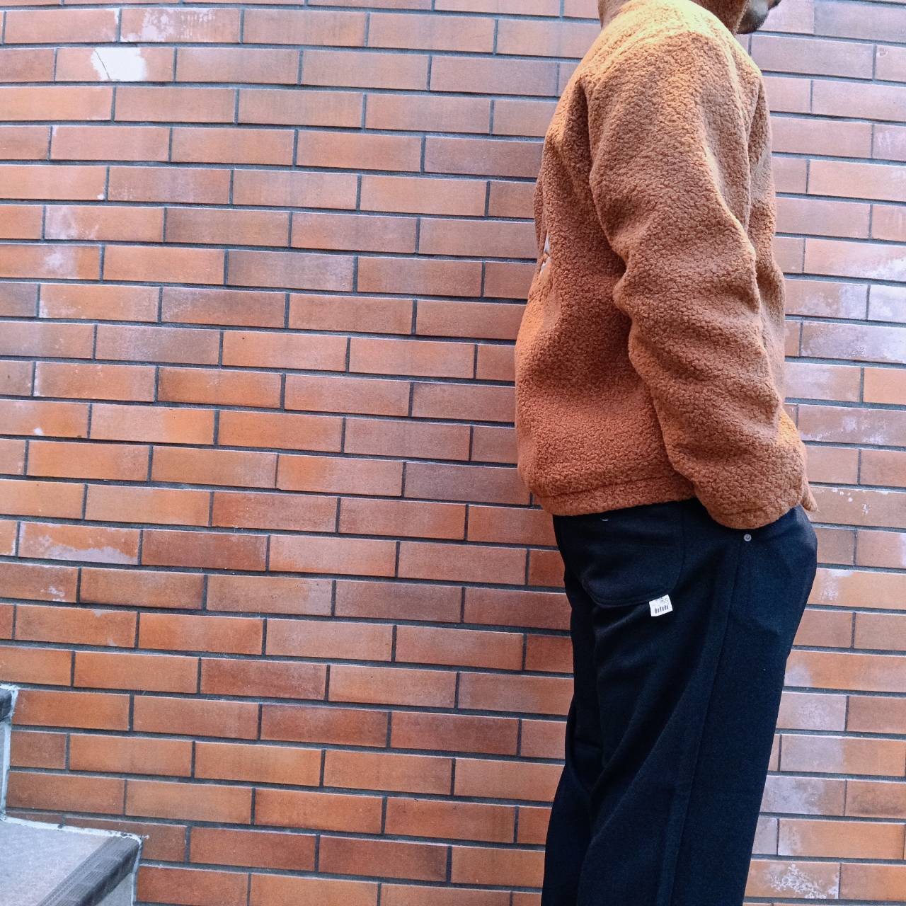 羊の毛並みのようなふっくらとしたボリューム感が特徴のボアパイル生地です。アクリルとポリエステルを主体とすることで、見た目の可愛らしさに加えて、軽さと柔らかな肌触りを実現しました。さらにウールをブレンドすることで、天然素材ならではの高い保温性と、冬の乾燥にも強い優しい風合いをプラス。着るだけで心地よい温もりに包まれます。