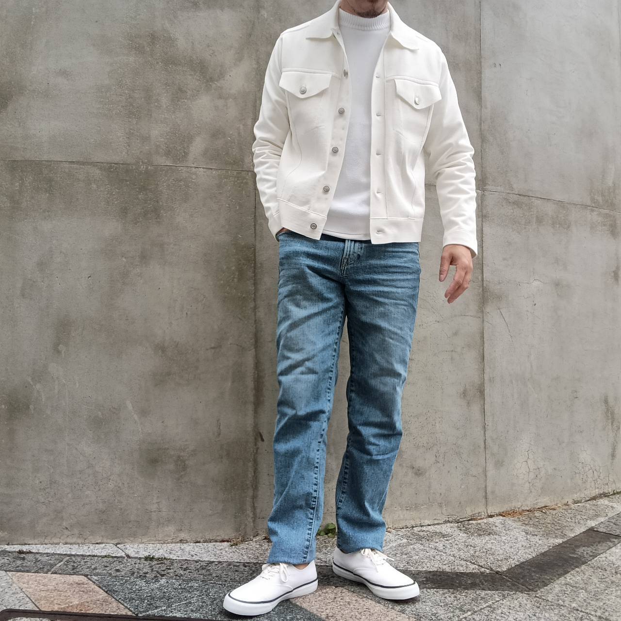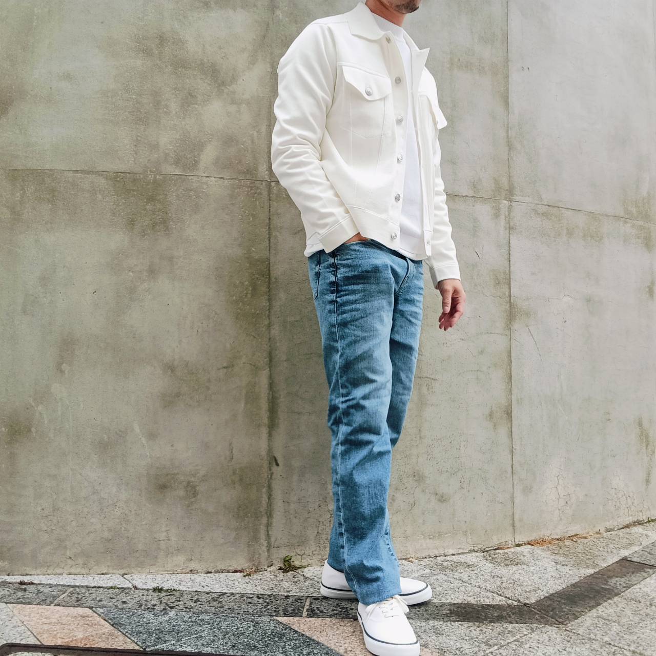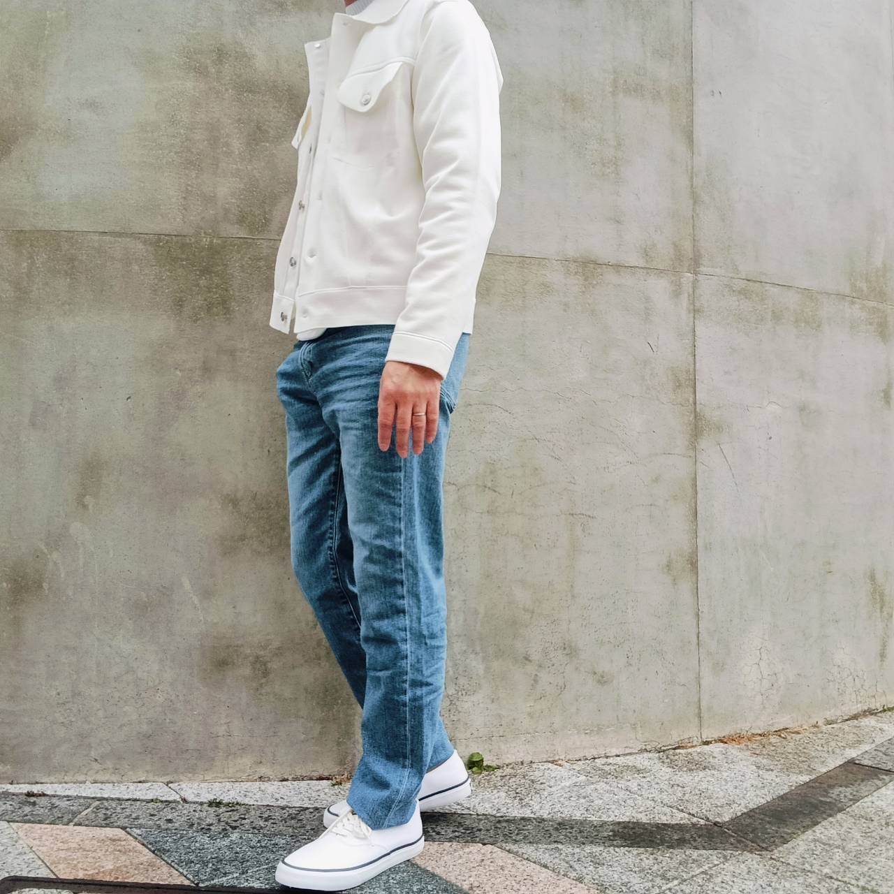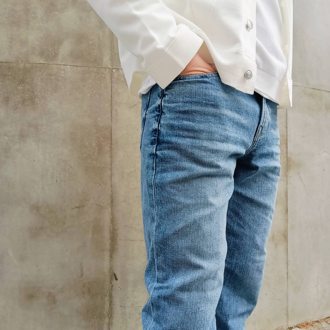 股上を少し長めに取り、足長効果のある、大人ストレートシルエット。