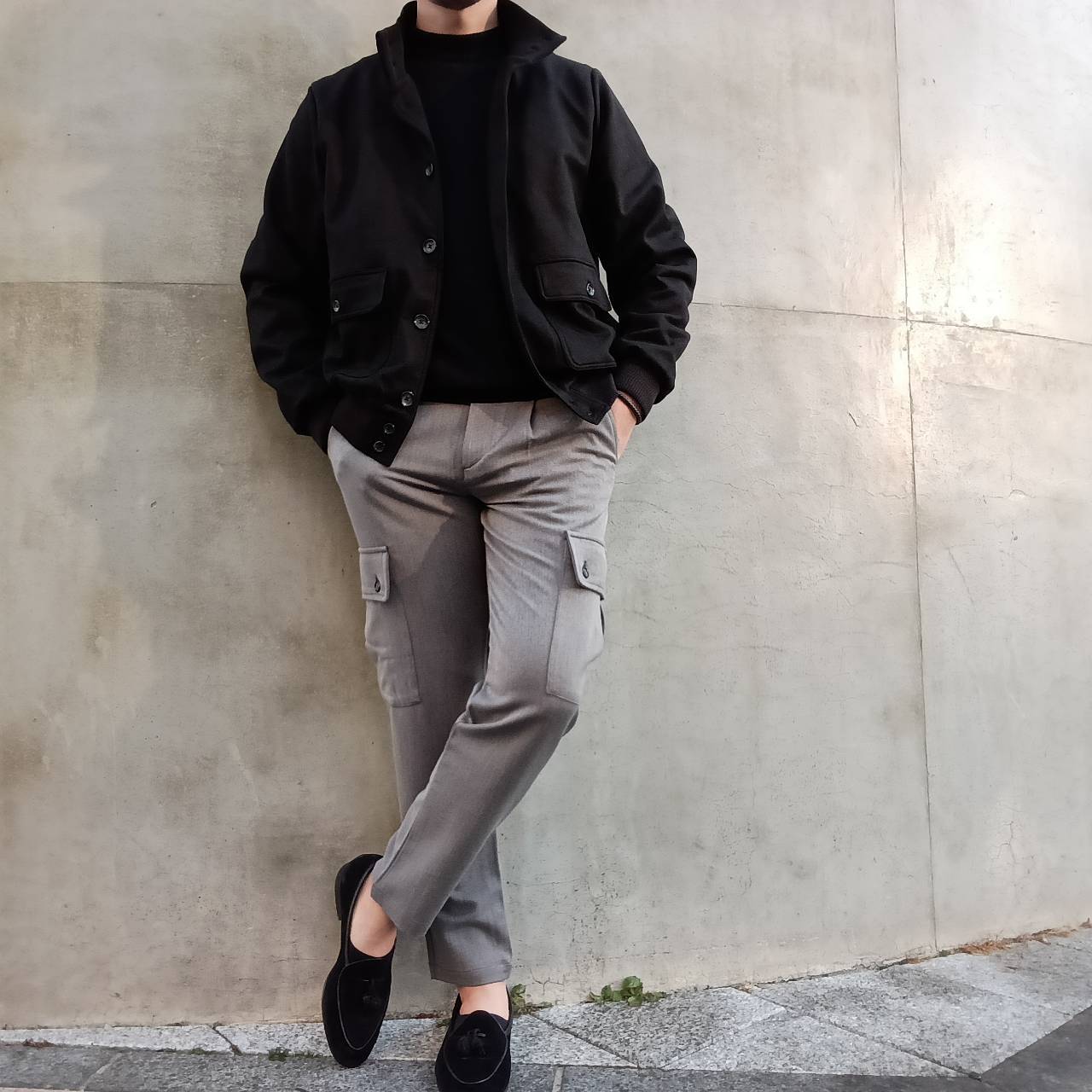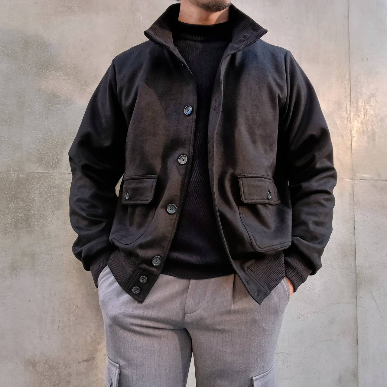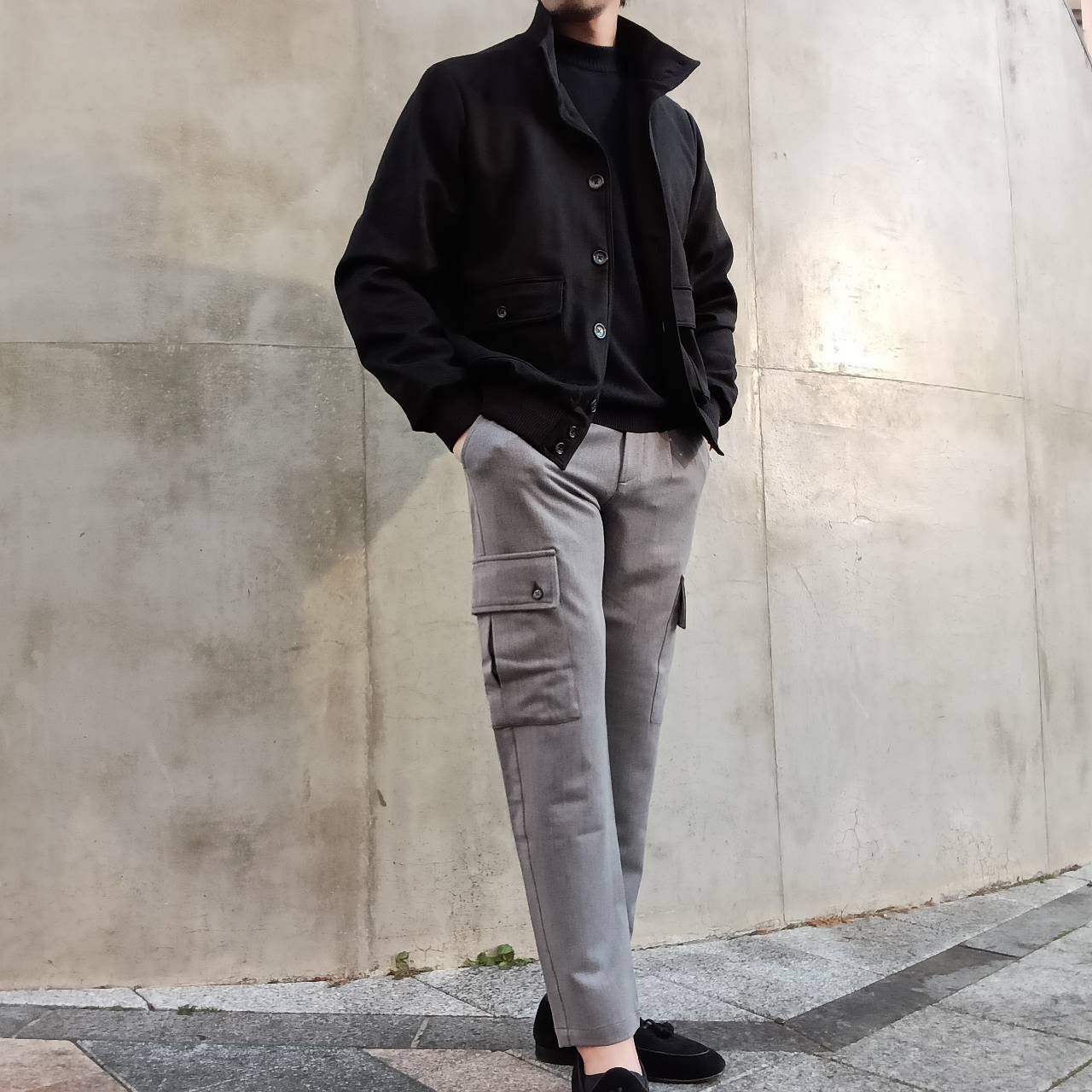 着丈の短いブルゾン系のアウターと相性◎です。