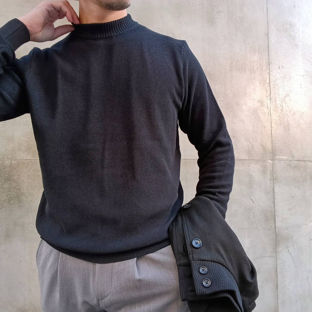 イタリア糸を中心に高級素材や希少性の高い糸を使用し、長年培ってきたノウハウと技術をデザインに落とし込み細部にこだわった物作りをしているニット専門のブランドでございます。