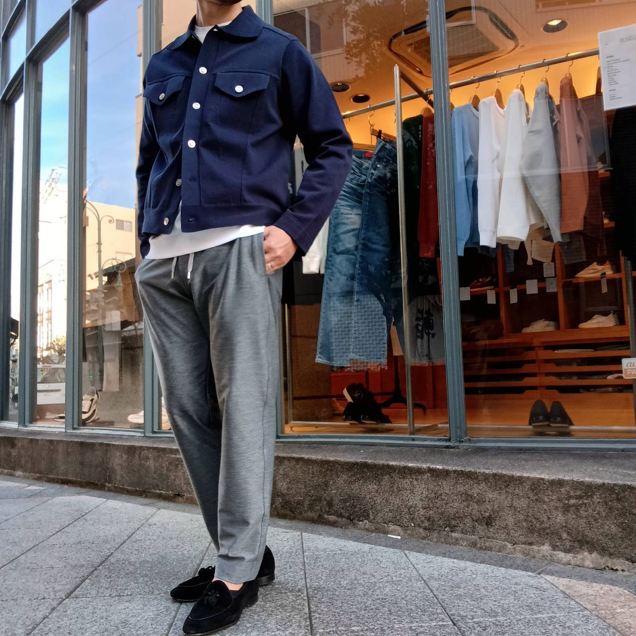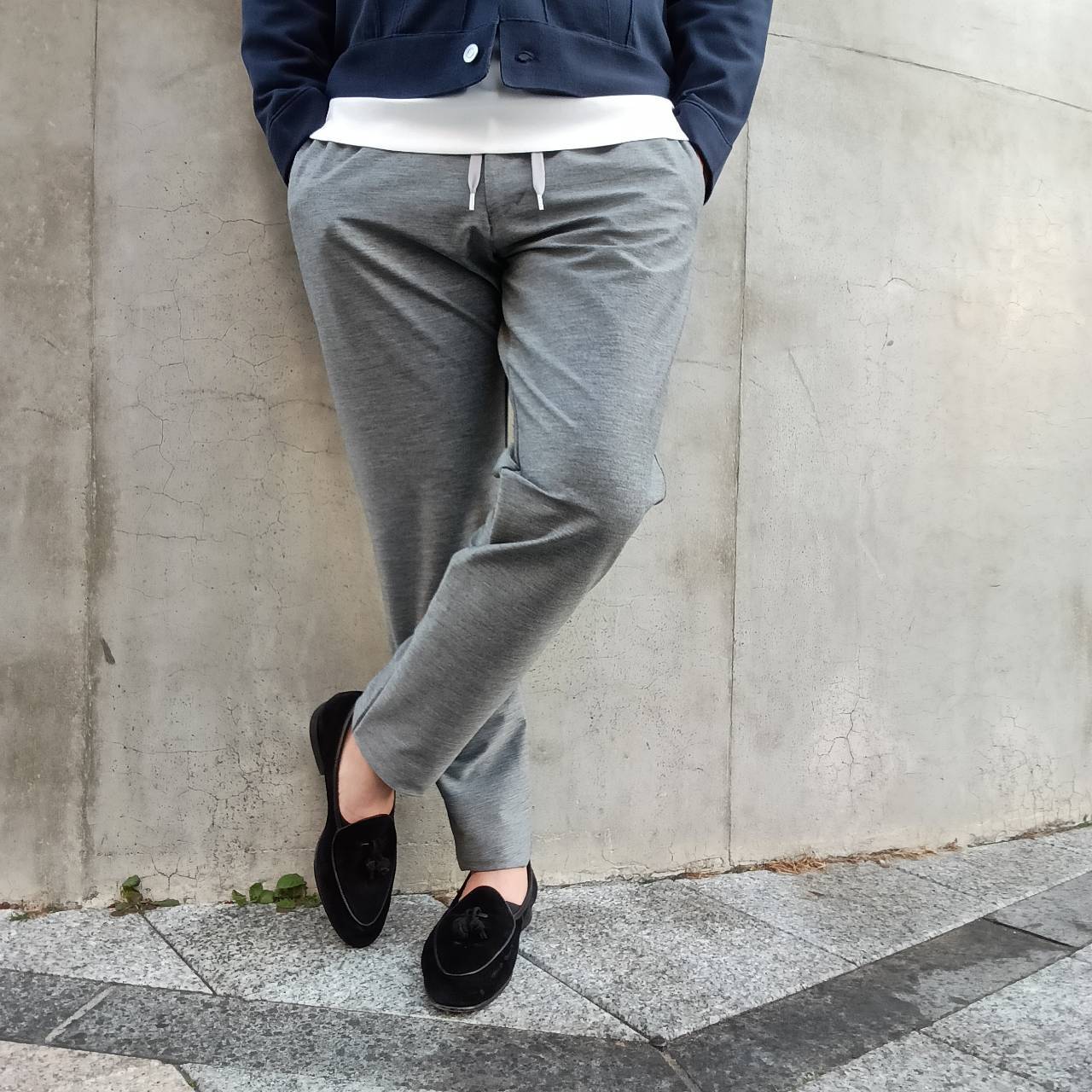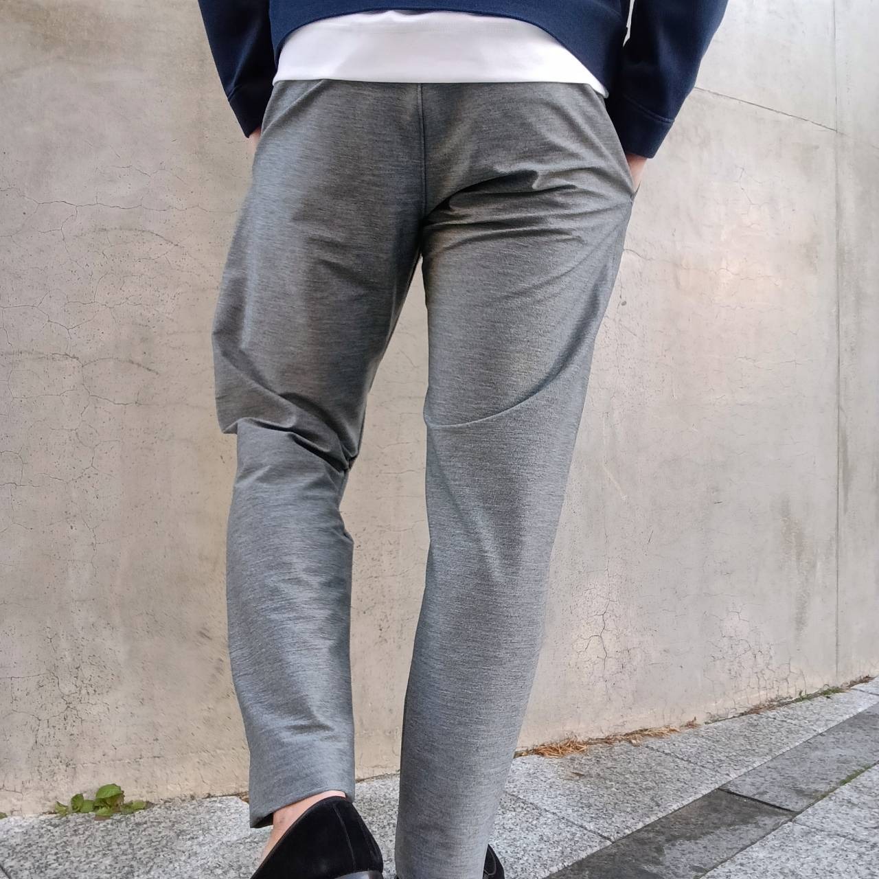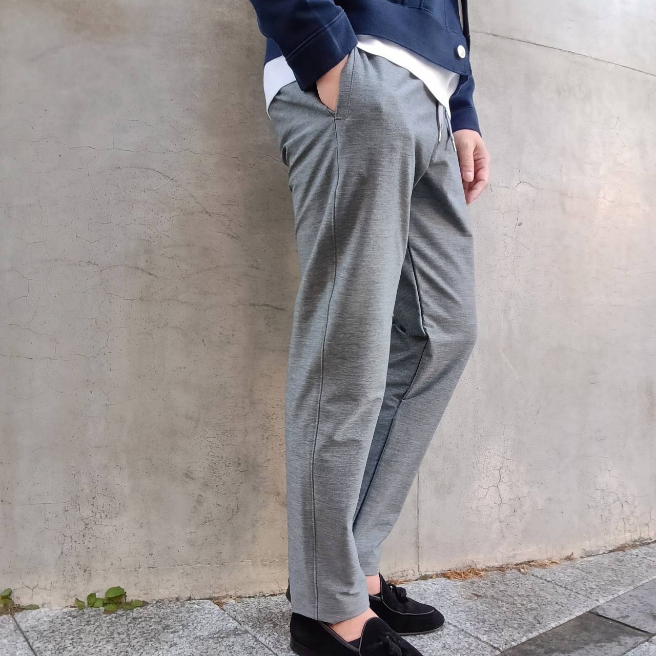 快適なストレッチ性と膝抜けを防ぐキックバック性に優れた『HYPER FIT』のツイルジャージ素材。コシを出すために先染めで作り風合いにも拘っています。。テーパードのリラックスイージーモデルで、サイド切替、ウエストスピンドル入り、ループ付き。後入荷になってしまいますが同素材2Bのテーラードジャケットとセットアップでも着用いただけるアイテムです。
