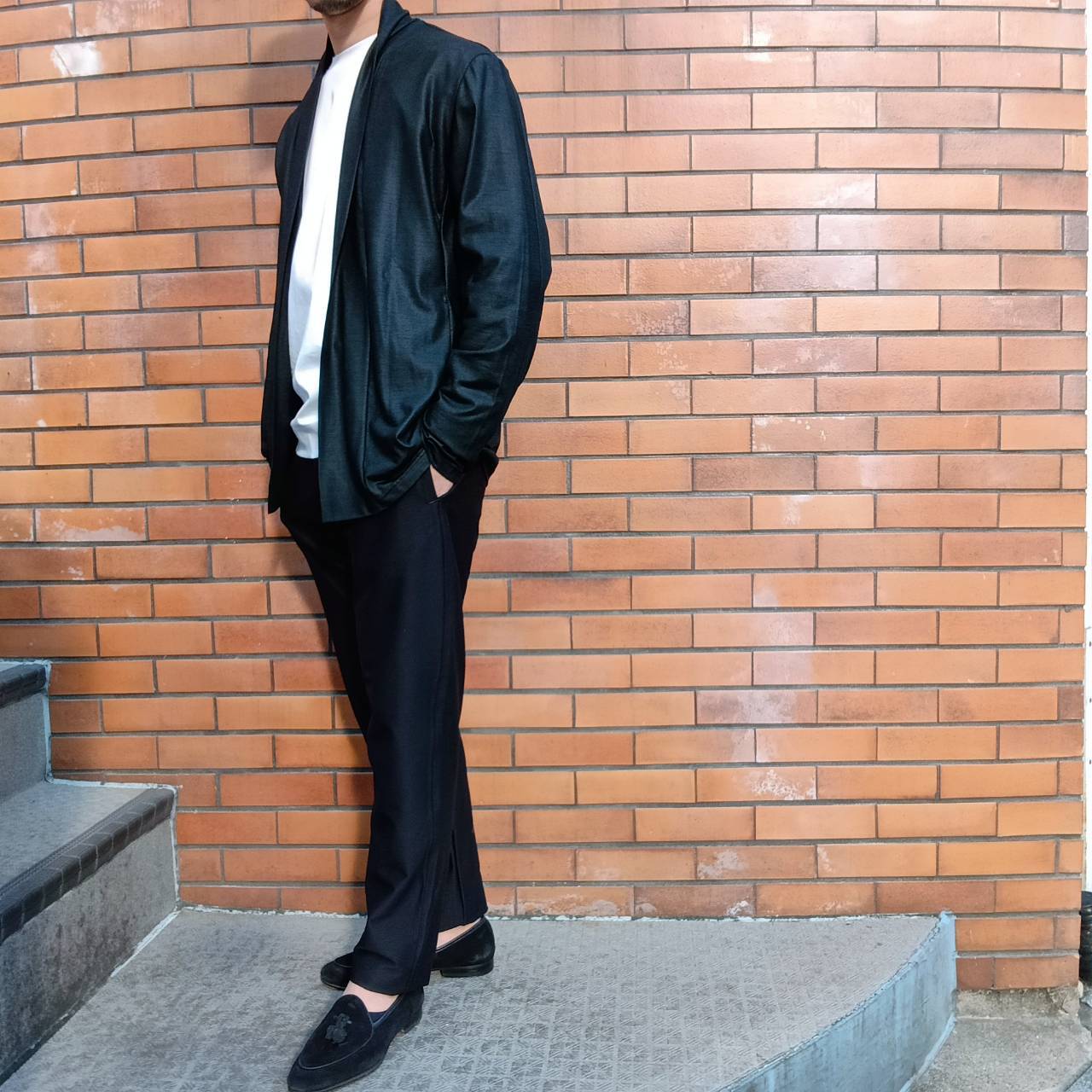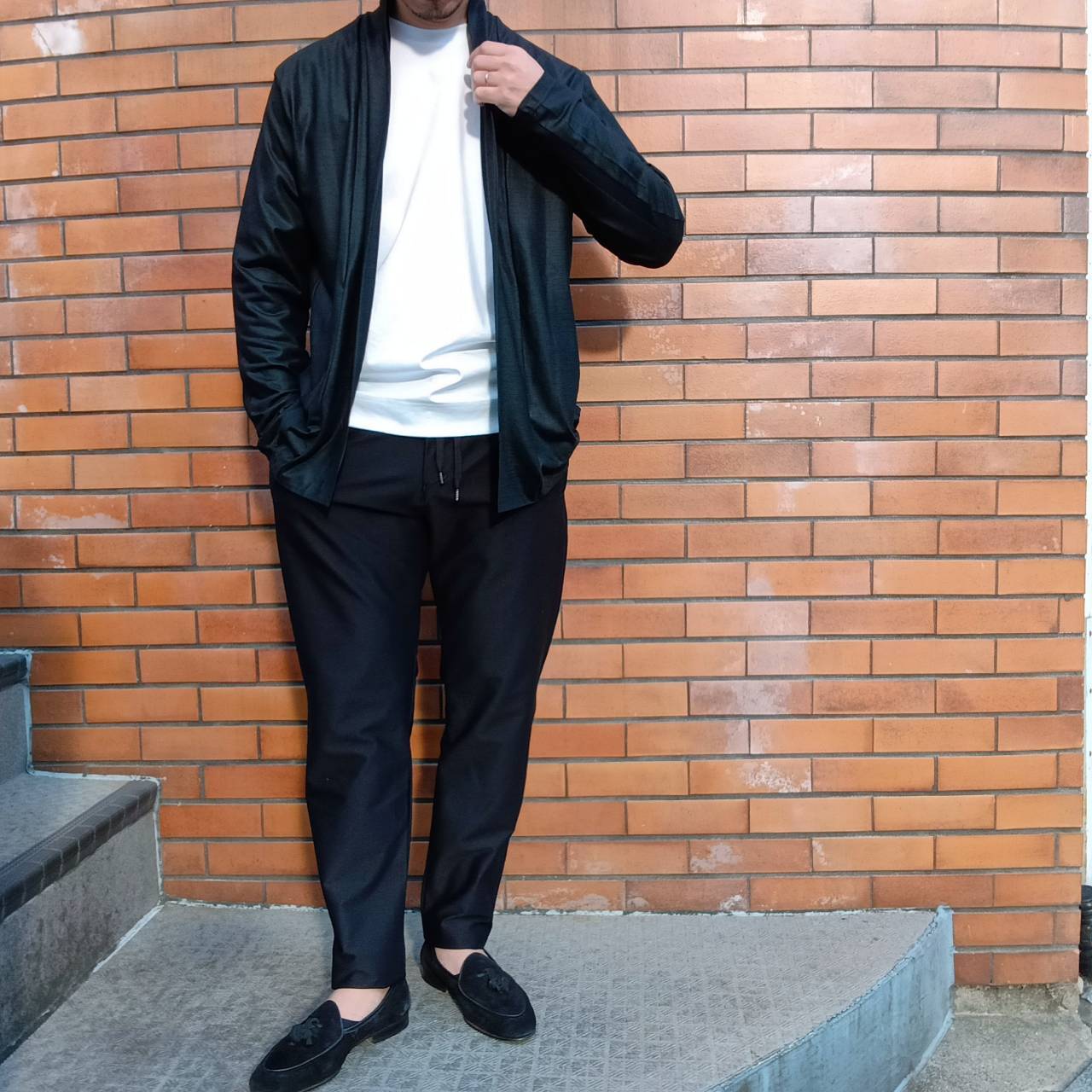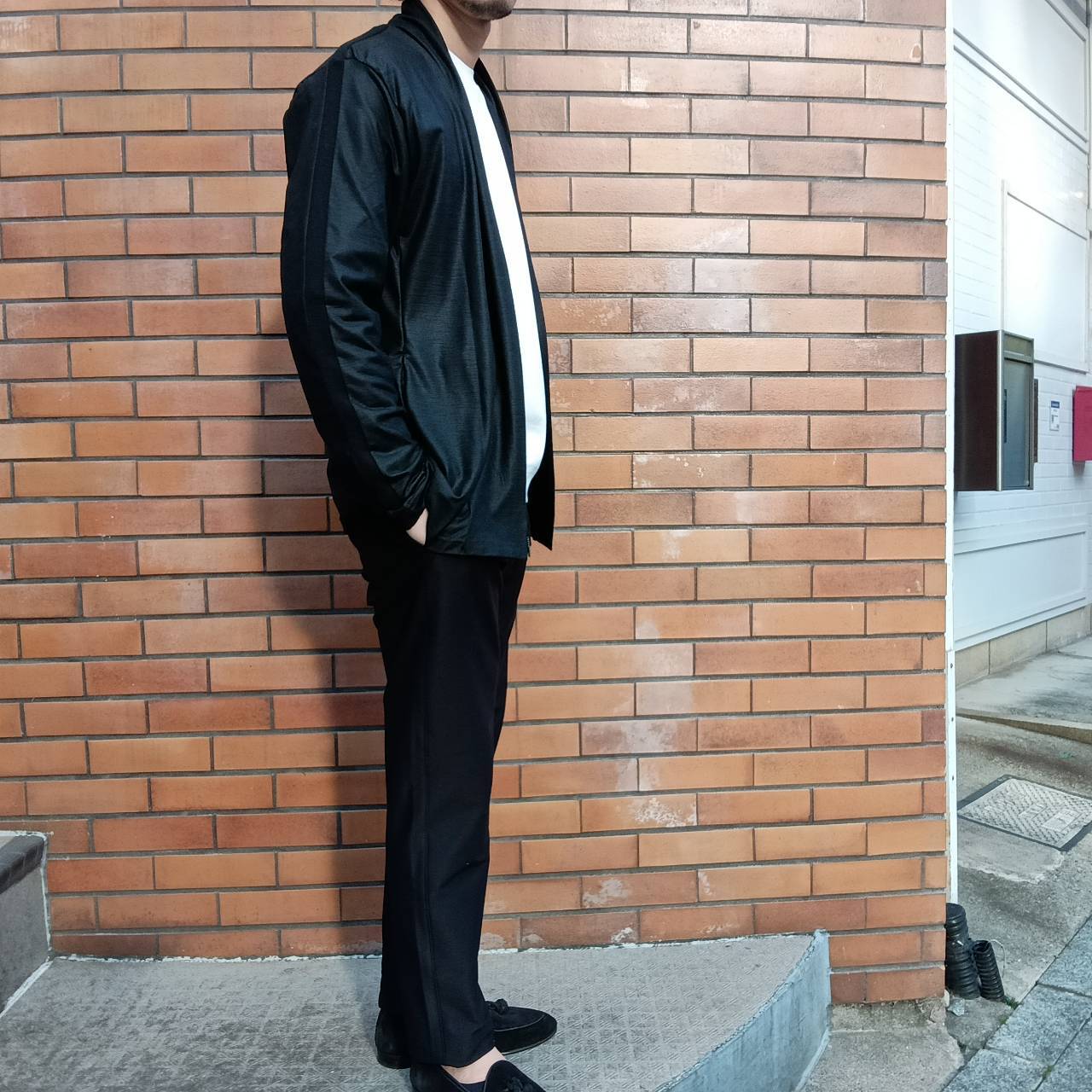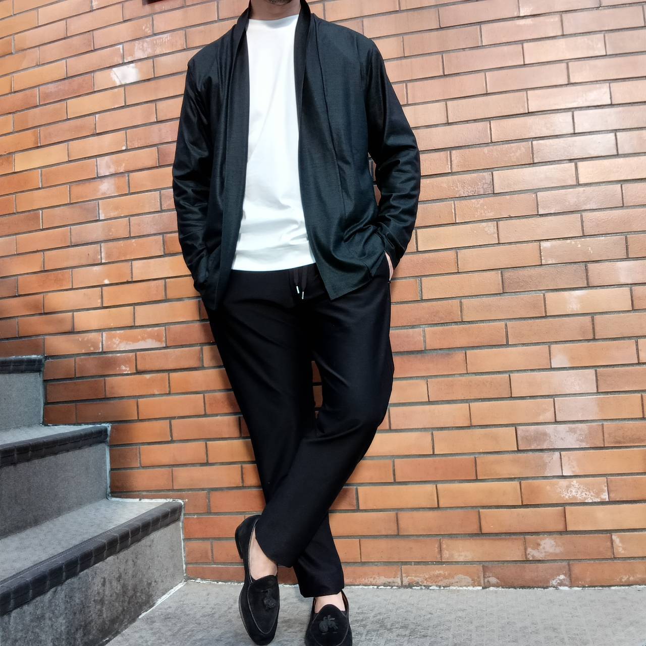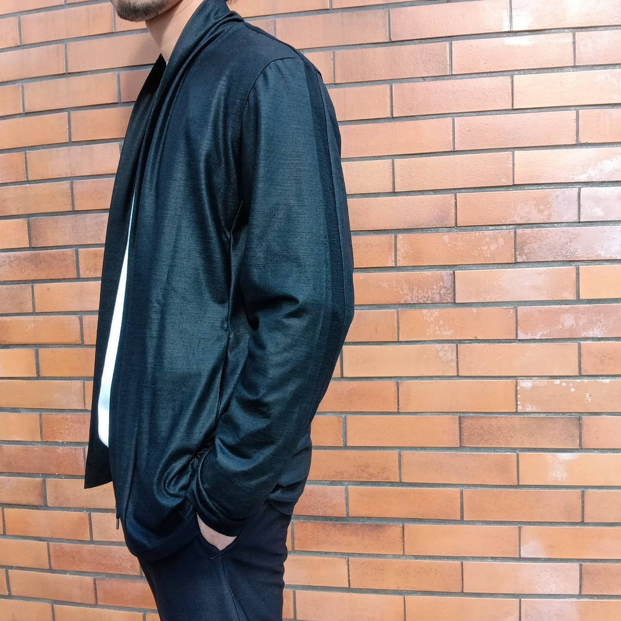 32G 1/60 SZ天竺。高級な極細で柔らかい原毛を使用したサマーウール天竺。プロテインウォッシャブル加工を施すことでウール特有のチクチク感をなくし、滑らかな肌触りを実現しています。糸加工を施してから編み立てることで、生地コーティングには無い伸縮性があり、高級メリノウール(16.5マイクロン)ならではの繊維の機能を保つことができるのも特徴の一つです。上記の素材を使用したサマーウールカーディガン。ウール本来の特性である優れた吸湿発散、通気性による特性を活かした、春~夏の羽織アイテムとして最適な新提案シリーズ。サラッと羽織れるボタンレスカーディガン。ミドル丈とすることで、スタイリングアイテムとして汎用性のあるデザインに仕上げた。wjk定番シームラインをリブ編み素材で切り替えることで、ブランドらしいアクセントを加えている。素材の良さを活かしたミニマルデザイン。上質なウールジャージー素材を掛け合わせることで生まれる絶妙なドレープによる光沢感が、より存在感を引き立てる一着に仕上がっている。