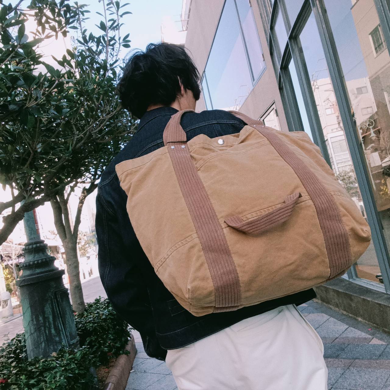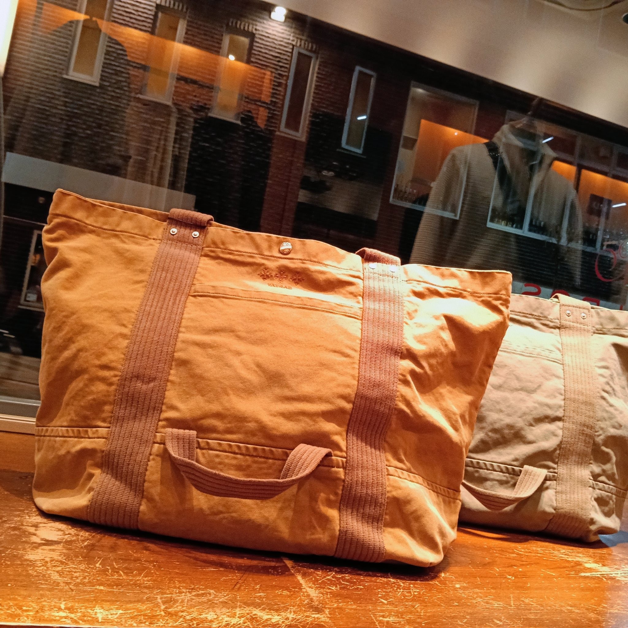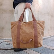 経年変化を楽しめるタフな生地に洗いを施して、ヴィンテージライクに仕上げたトートバッグ。