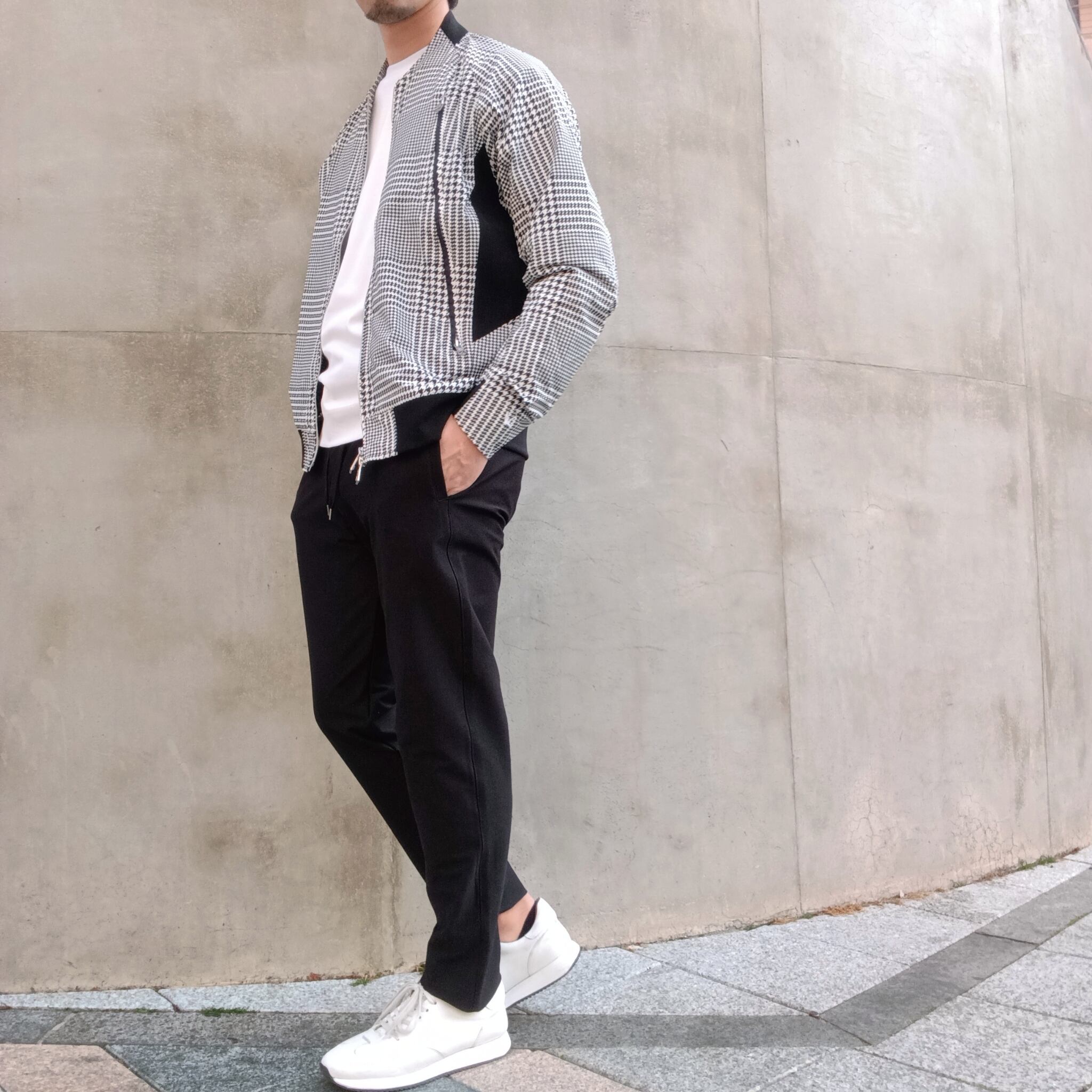 1PIU1UGUALE3 RELAX(ウノピゥウノウグァーレトレ リラックス)接触冷感 グレンチェック ナイロンブルゾン