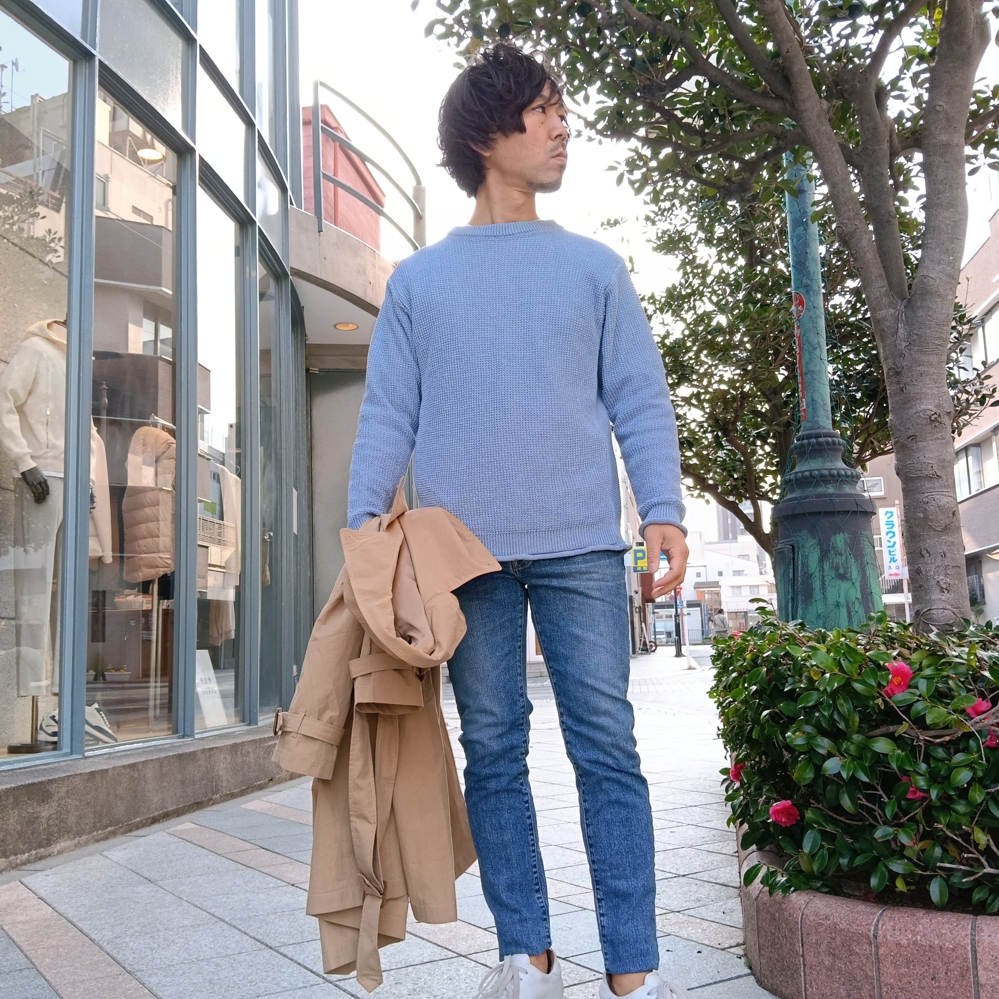 wjk (ダブルジェイケイ) GIMA crew summer knit / ブルー