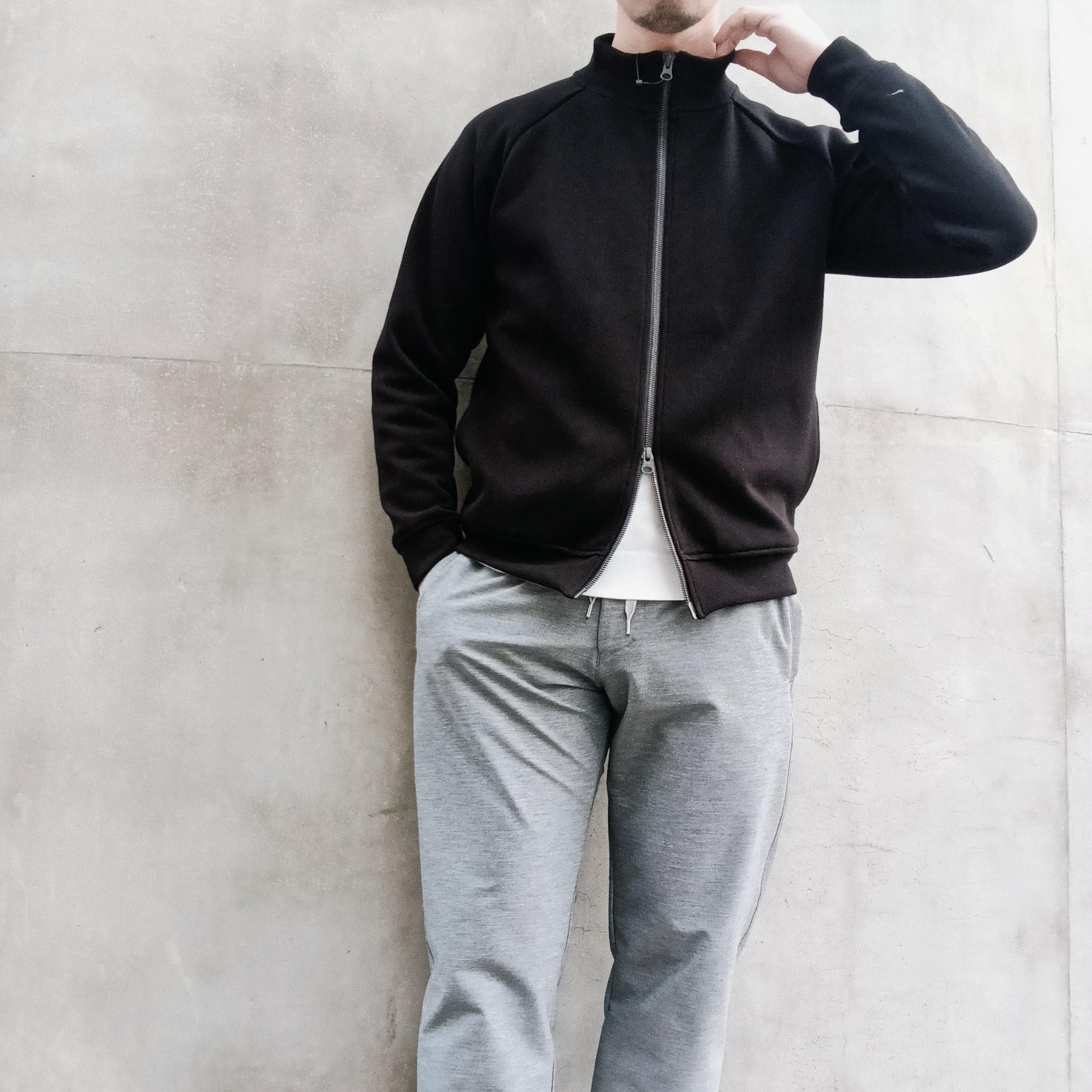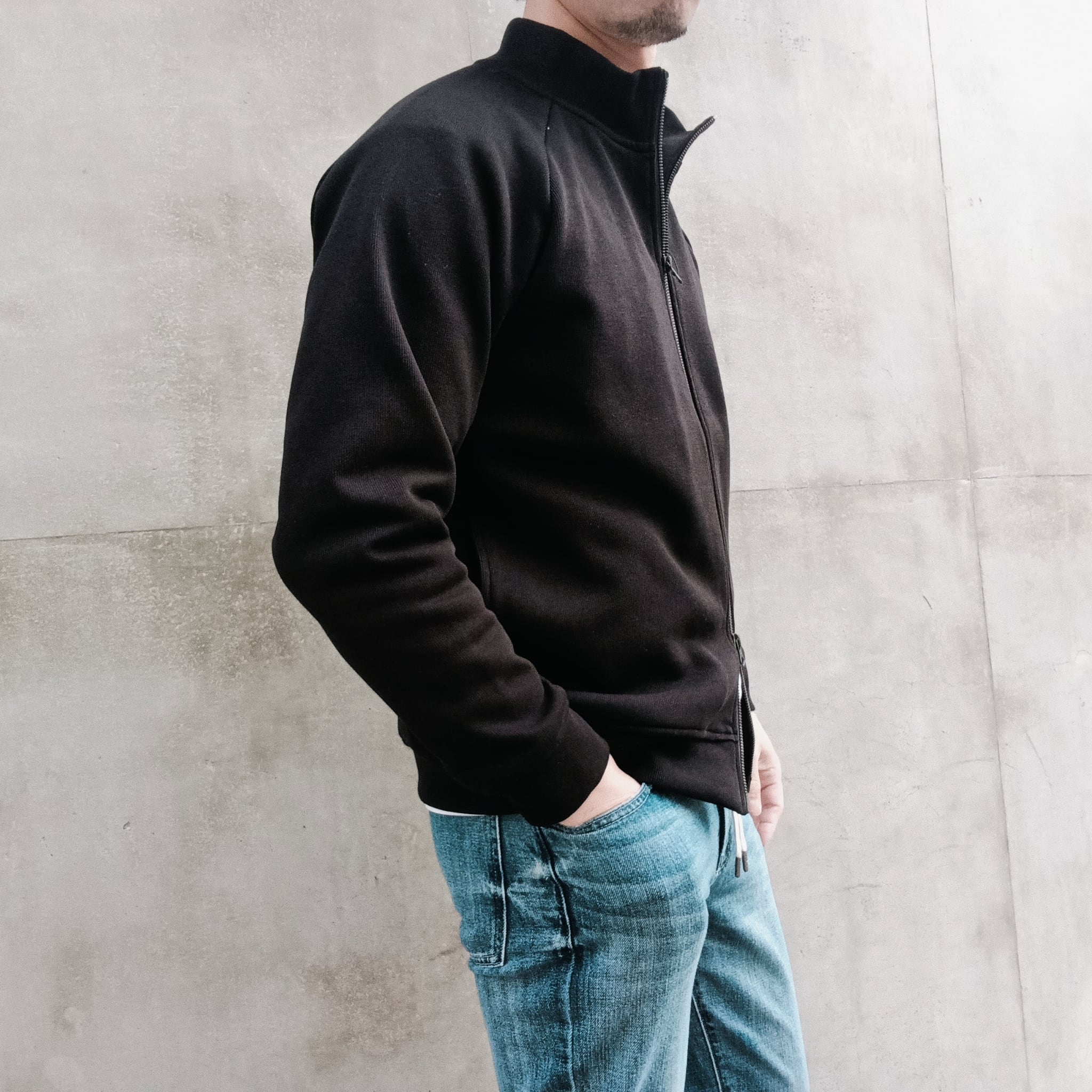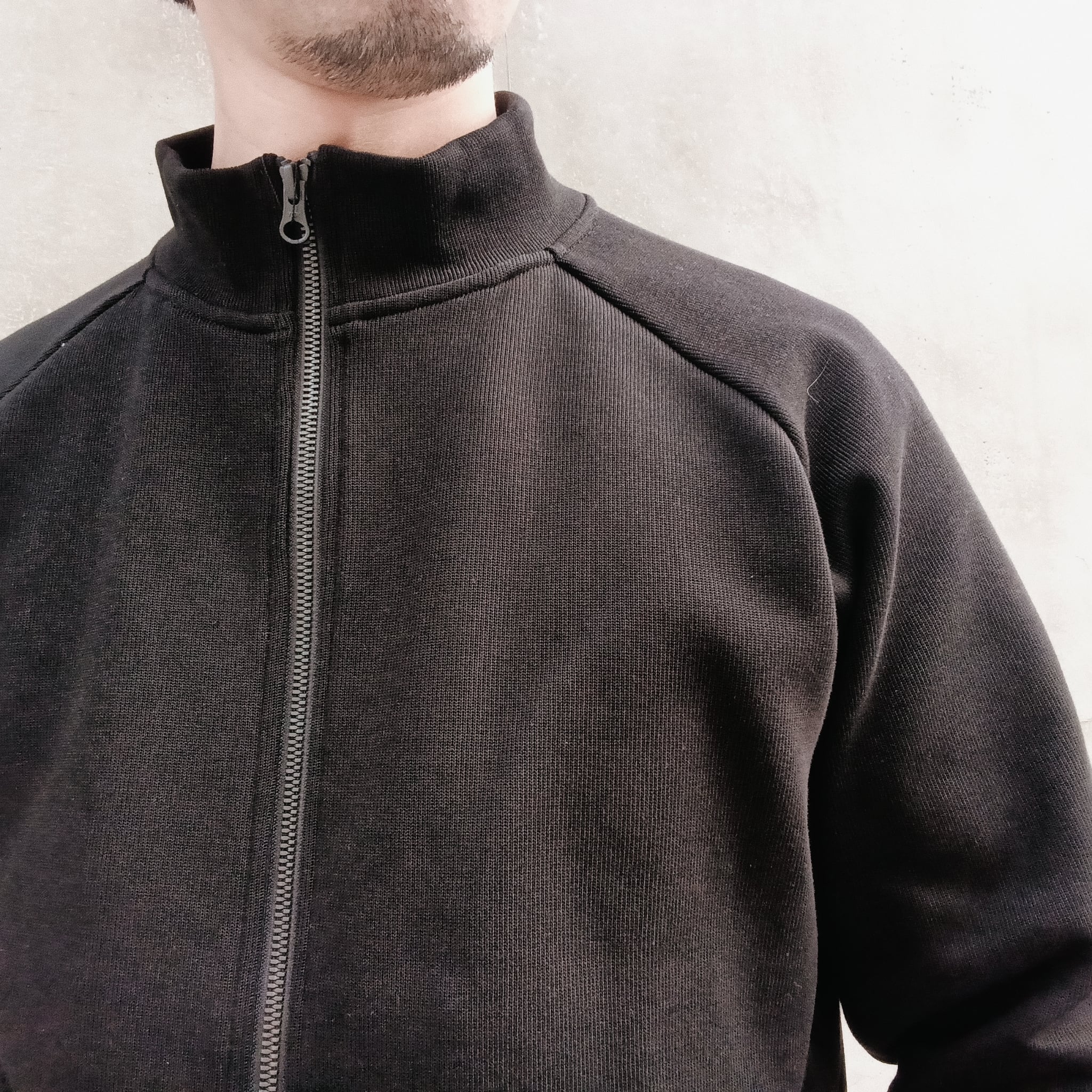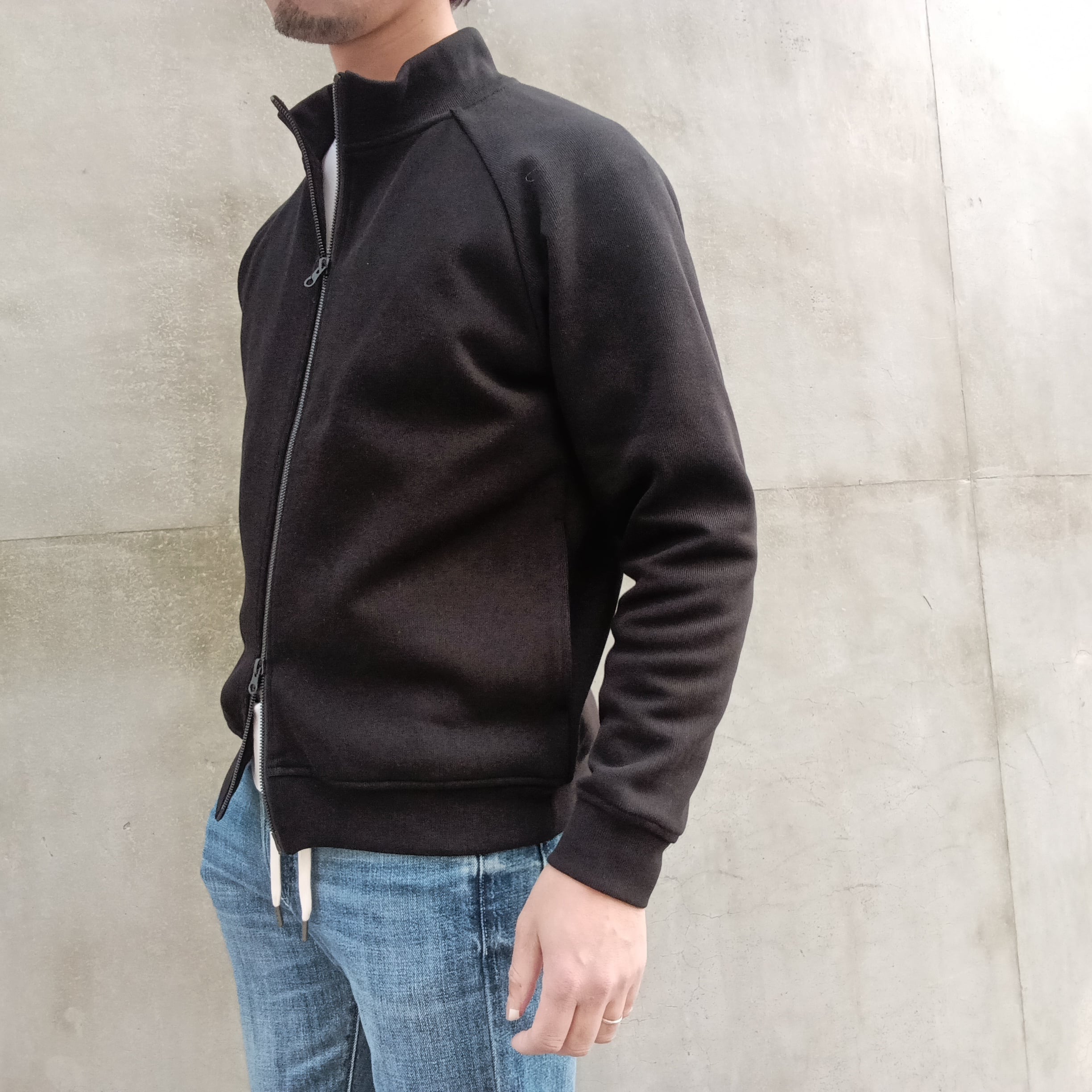 襟高5cmのシャープ目なシルエット、ラグラン袖、サイドポケ、身幅55cm、着丈62cm(46size)、ワイド系パンツに合わせられる絶妙なシルエットで仕上げています。
