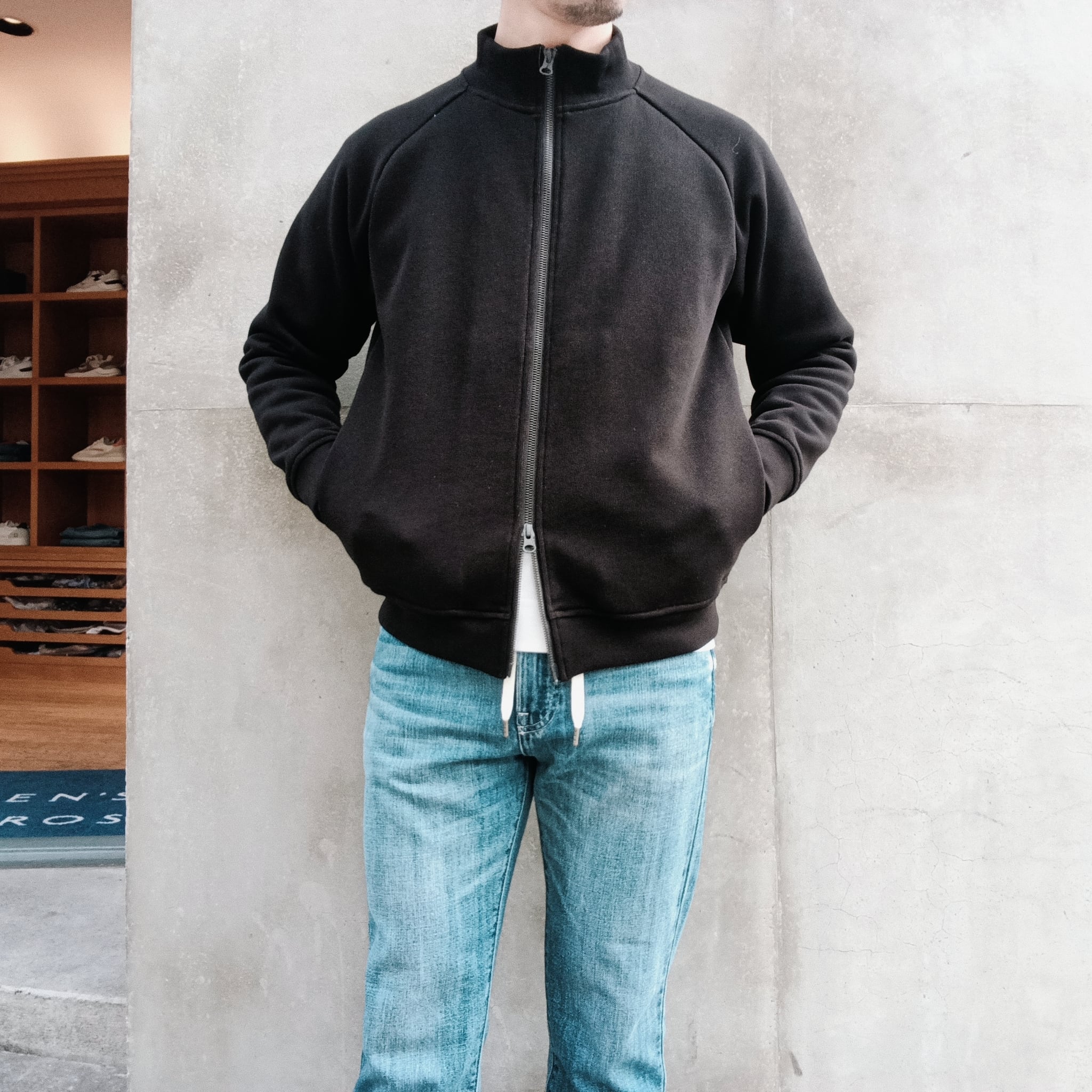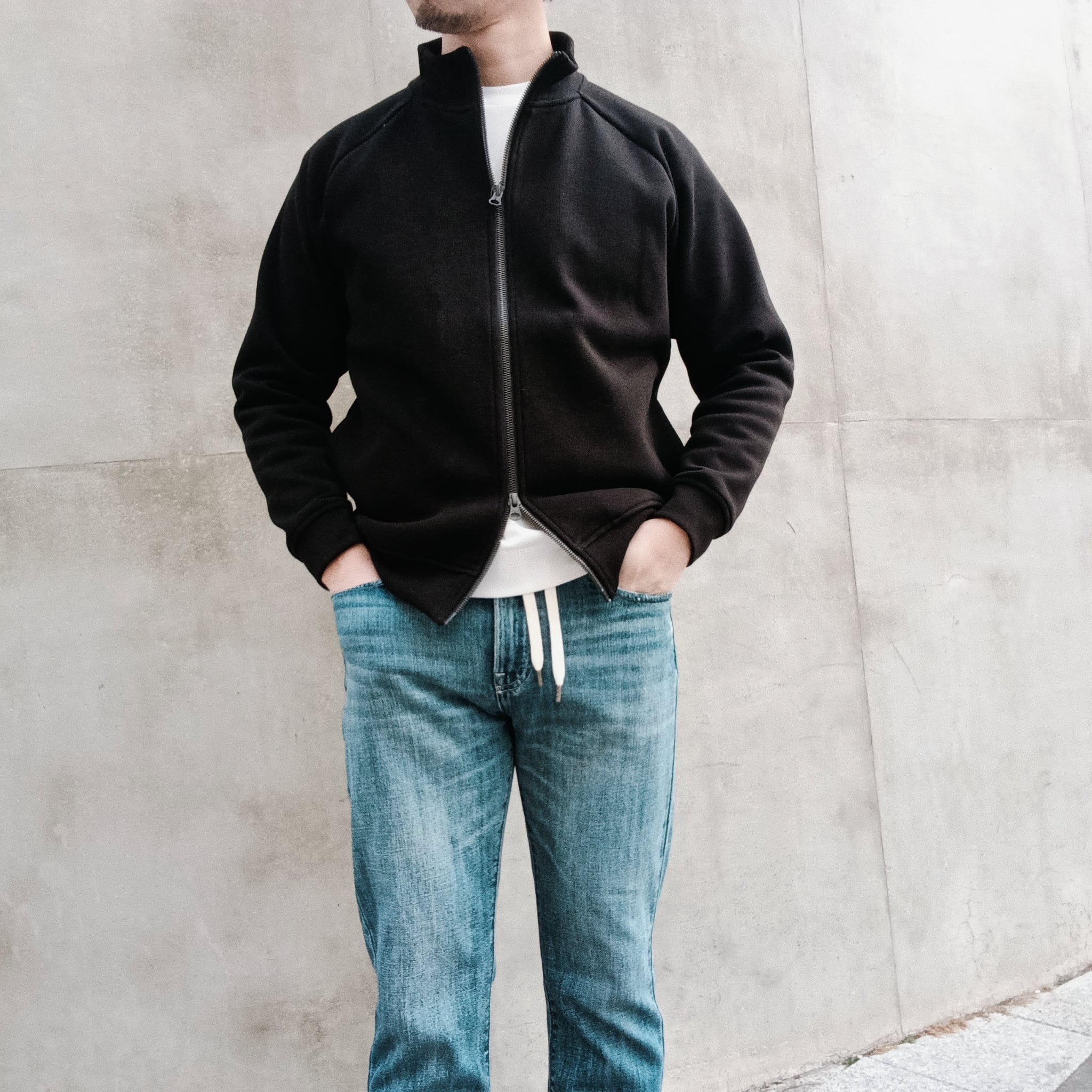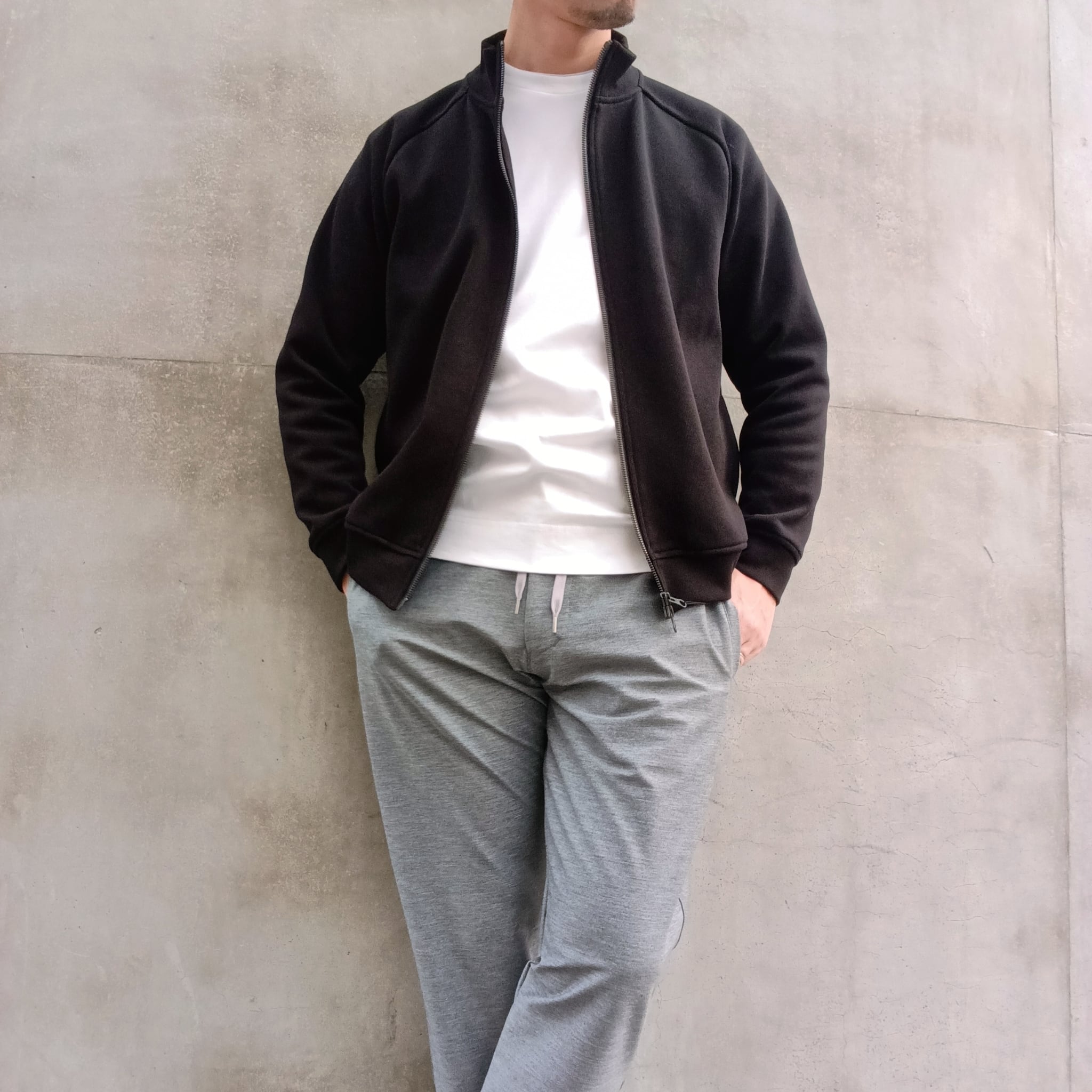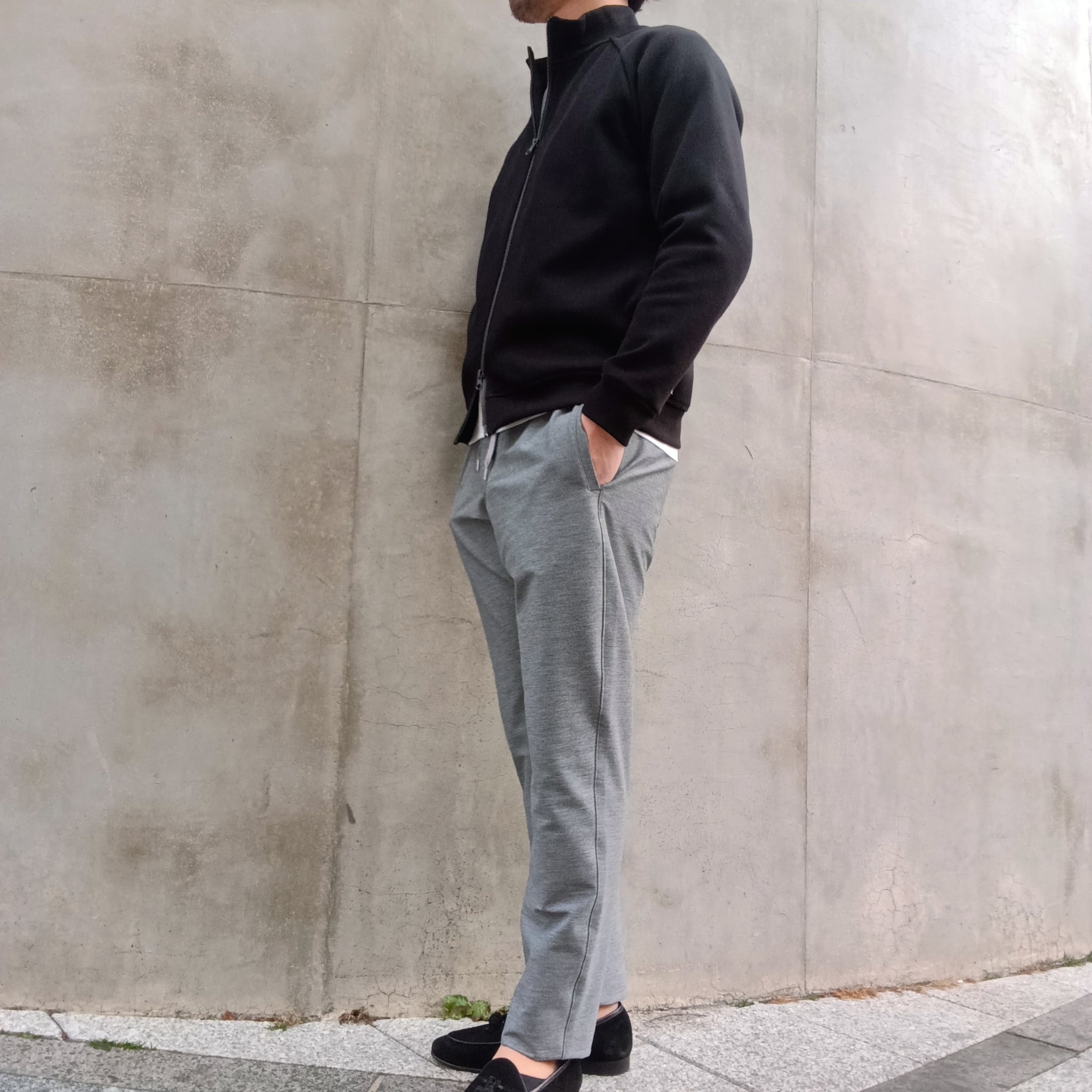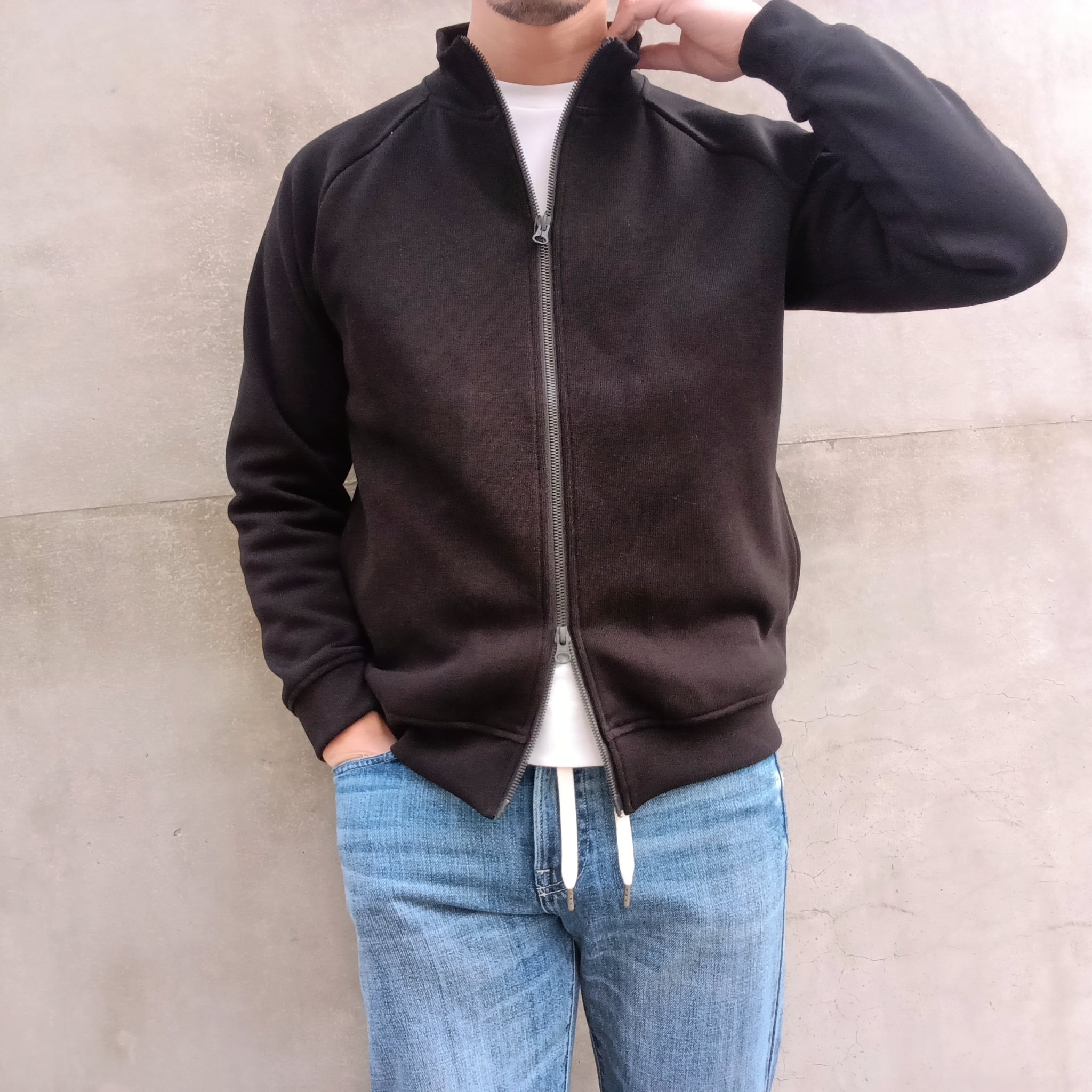 襟高5cmのシャープ目なシルエット、ラグラン袖、サイドポケ、身幅55cm、着丈62cm(46size)、ワイド系パンツに合わせられる絶妙なシルエットで仕上げています。