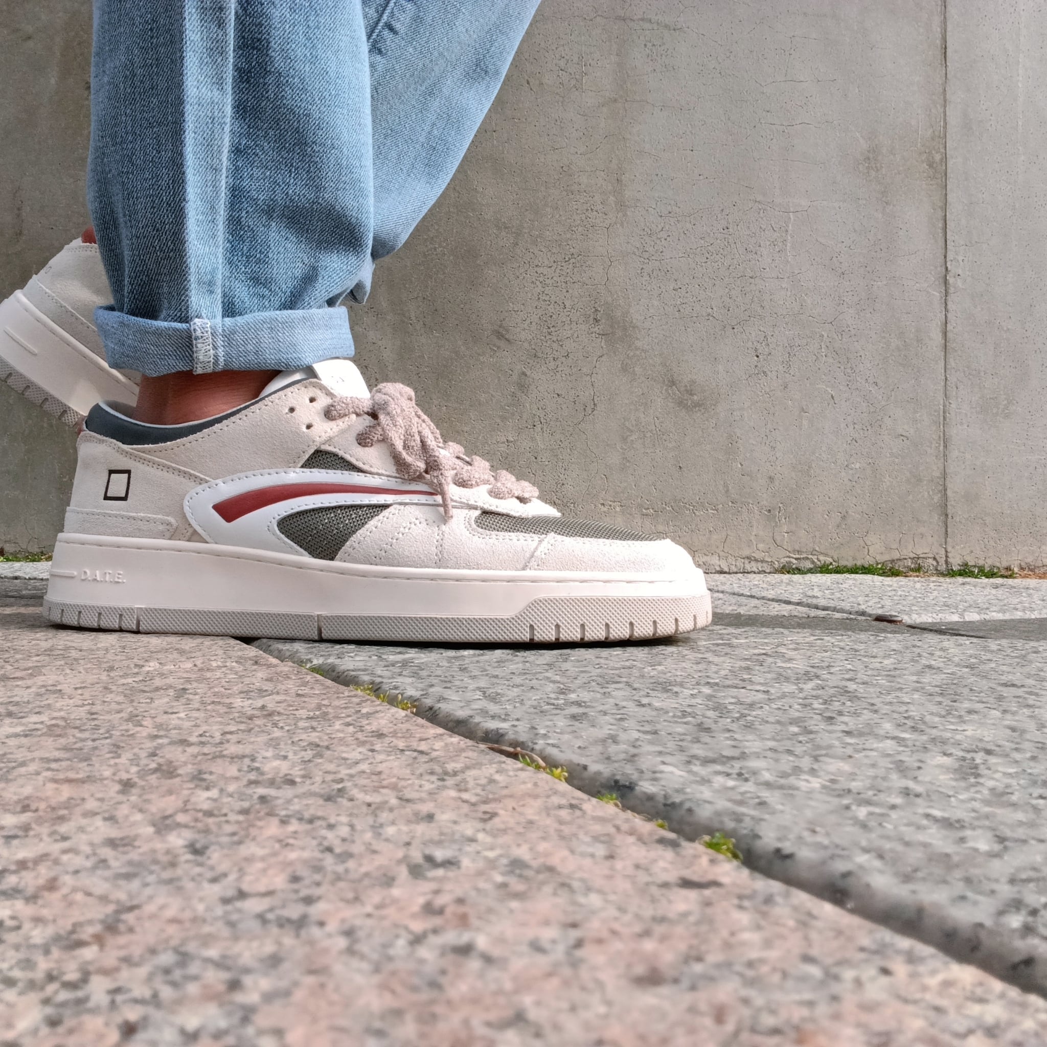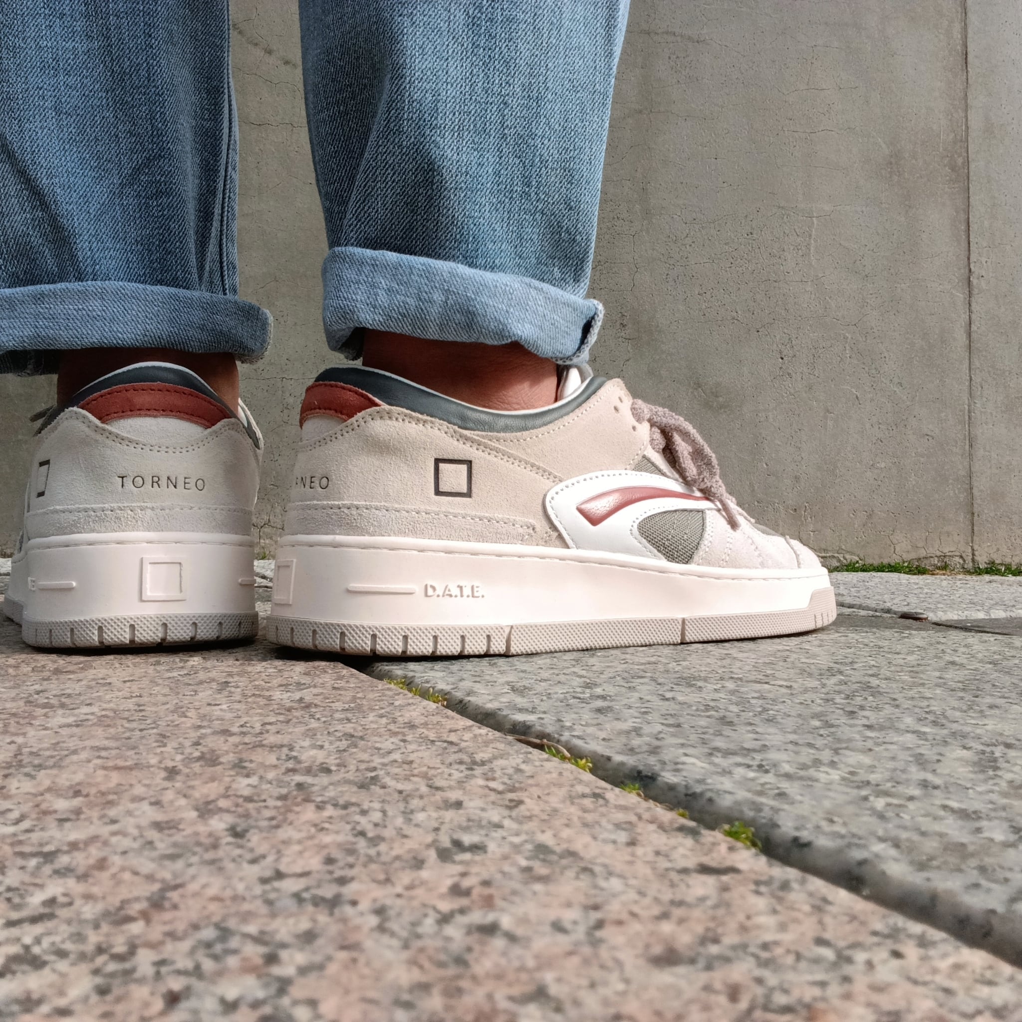 「TORNEO」の魅力は、まずそのマテリアルの豊かさに表れる。スムースレザー、スエード、そして表情のあるファブリック。異なる素材をバランスよく組み合わせることで、目にした瞬間に伝わる上質さと洗練された存在感を演出。一見ミニマルながら、奥行きのあるアッパーデザインがコーディネートにさりげない華やぎを添えてくれる。ややボリュームを持たせたカップソールは、軽やかな履き心地と都会的なシルエットを両立。クリーンで品のあるルックスながら、足元にはしっかりとした安定感があるのも魅力の一つ。